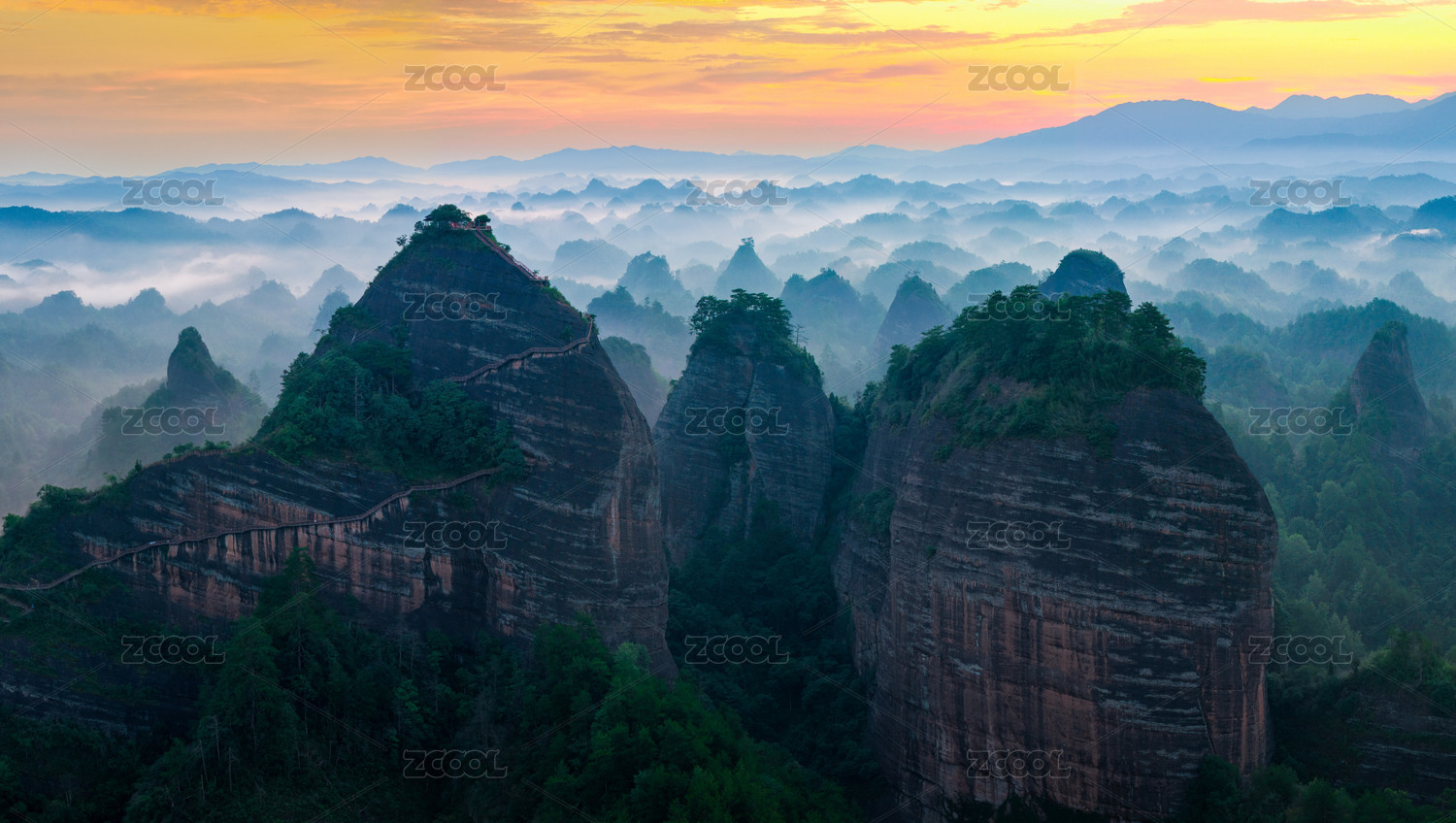 湖南通道万佛山丹霞地貌的壮丽晨曦