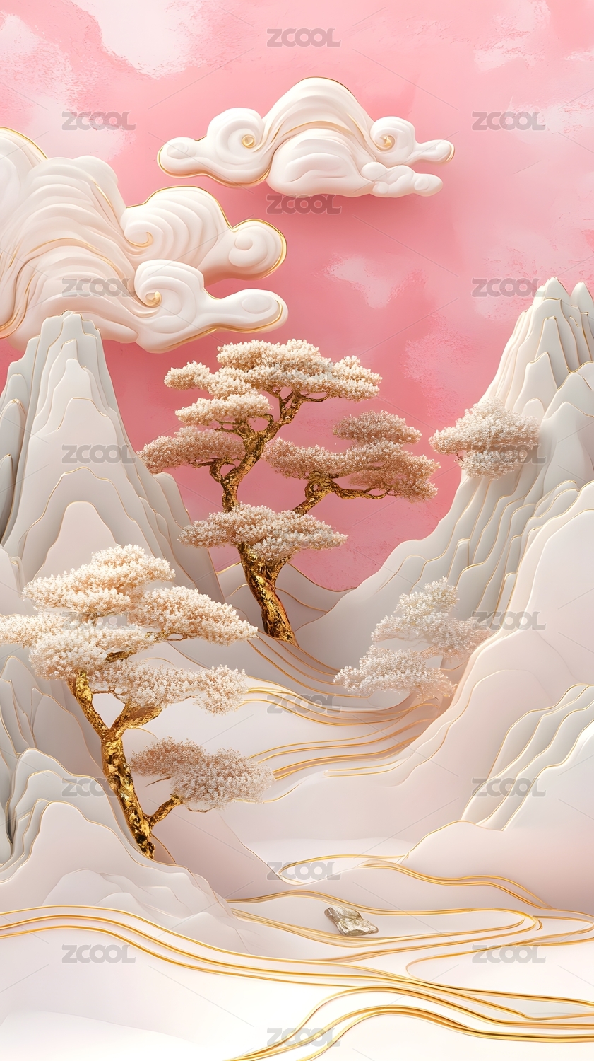 3d国风山水纸雕背景