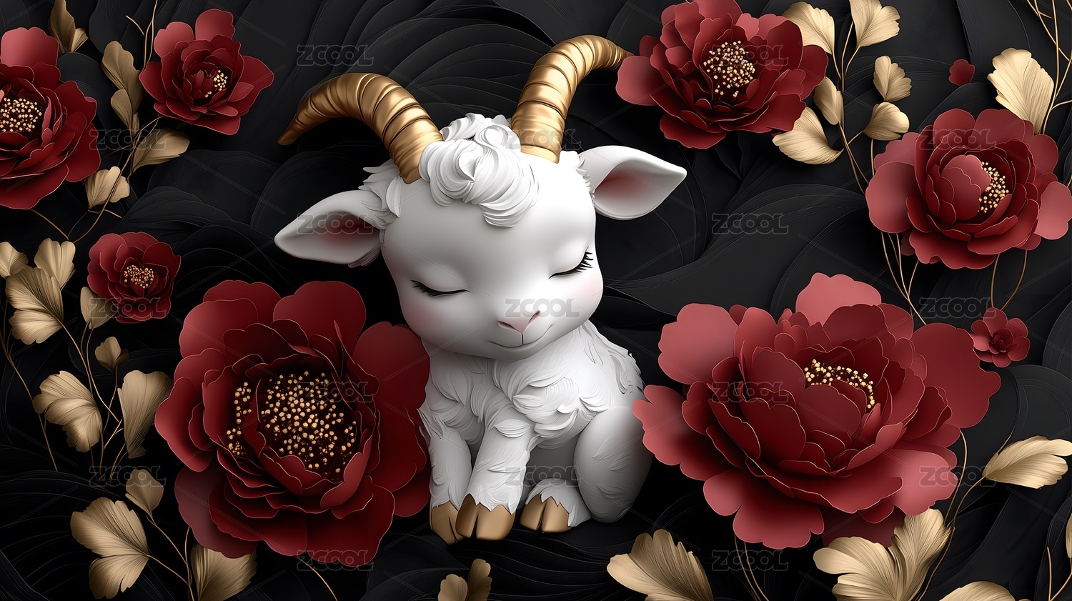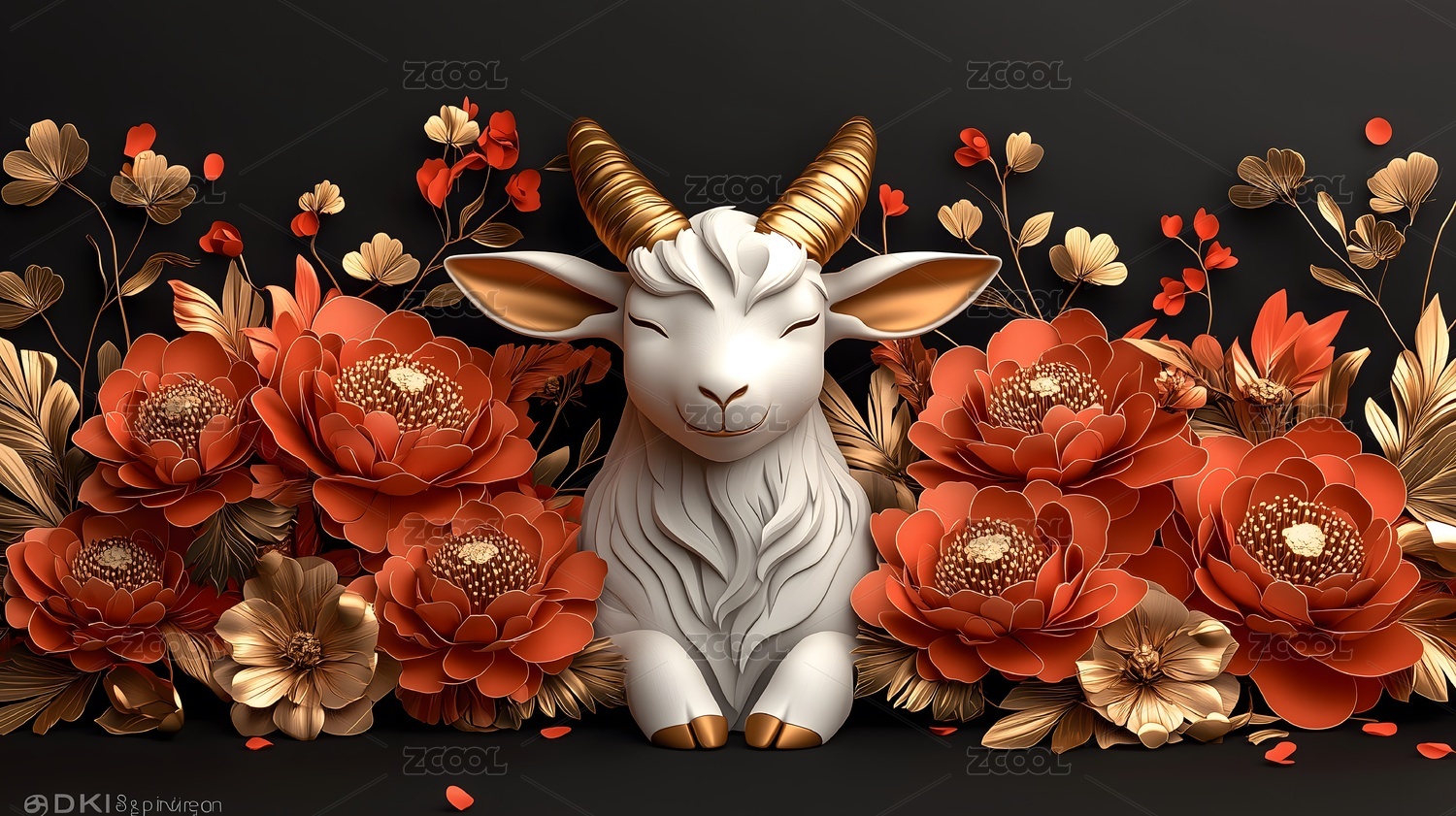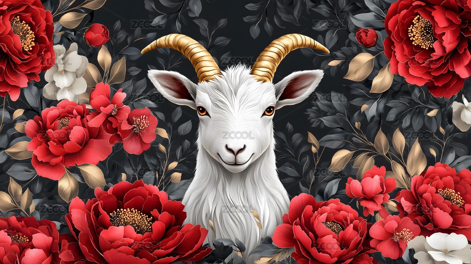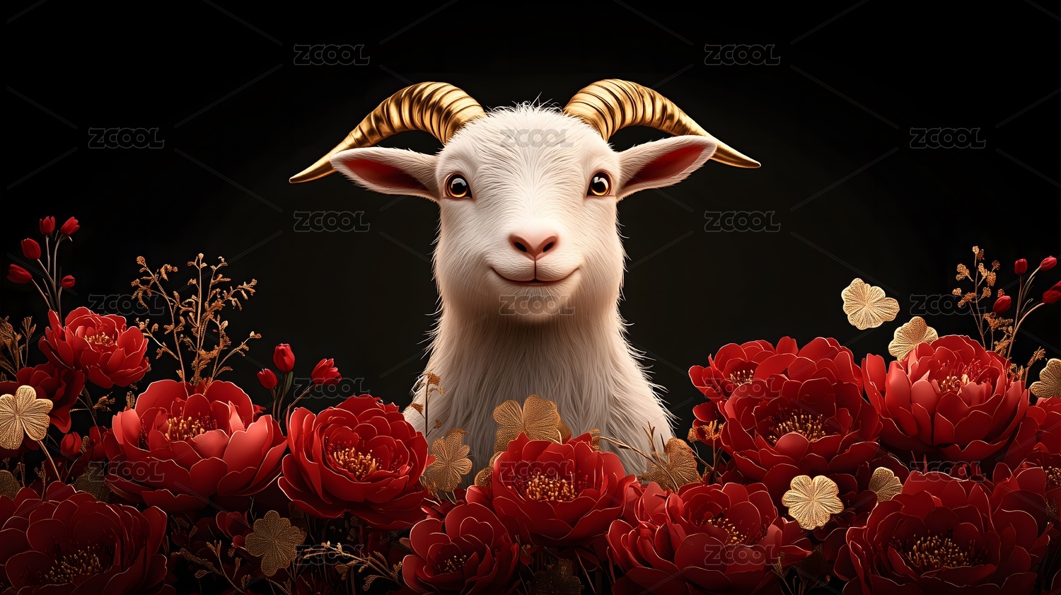 金角羊与红牡丹