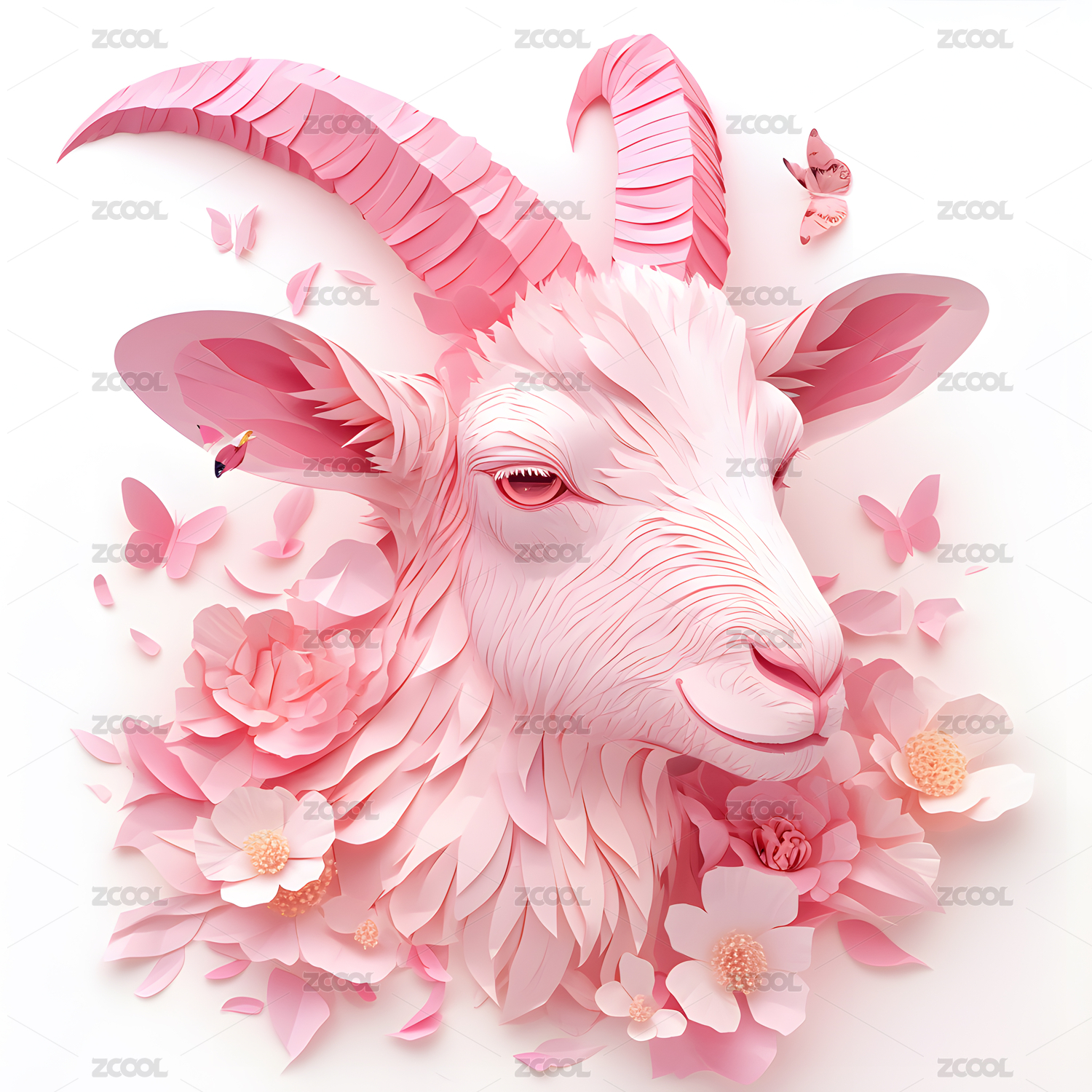 山羊与樱花主题
