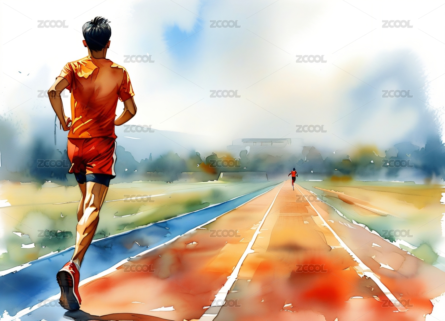 运动员在进行跑步比赛插画
