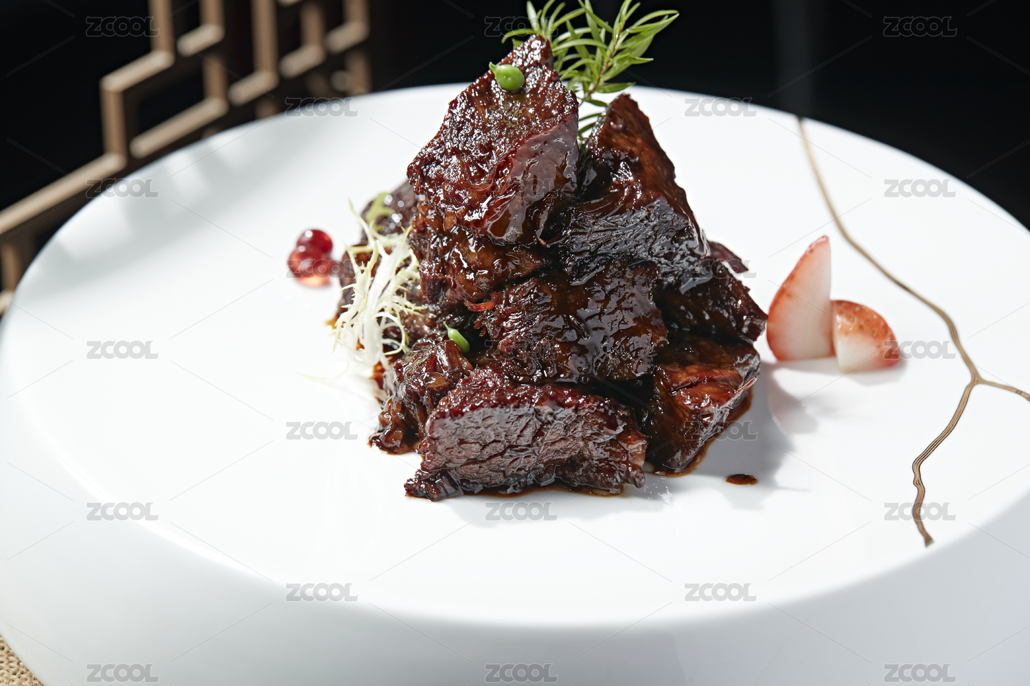 肉,骨,红烧,牛肉,膳食,晚餐,美味的,烤,肋骨,盘子