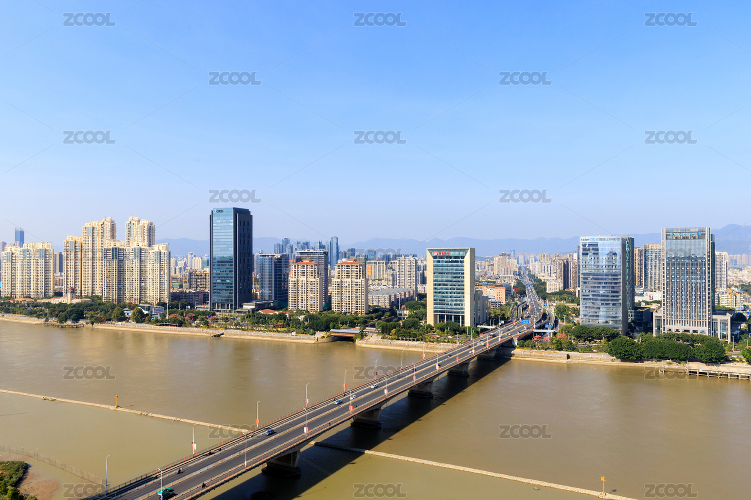 中国福建省福州市鳌峰大桥旁建筑风光