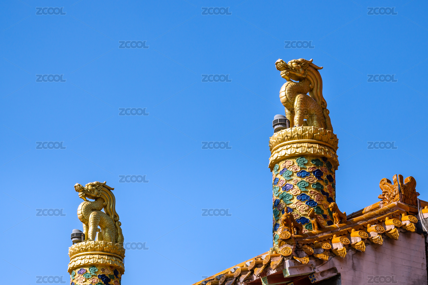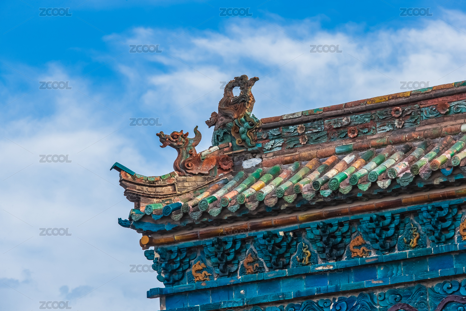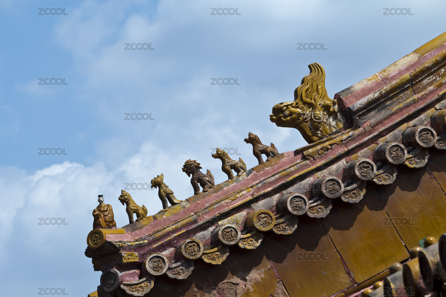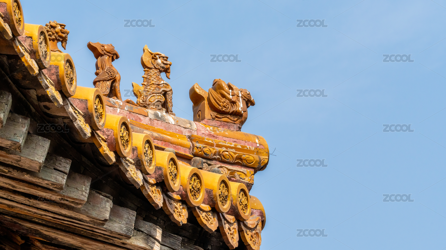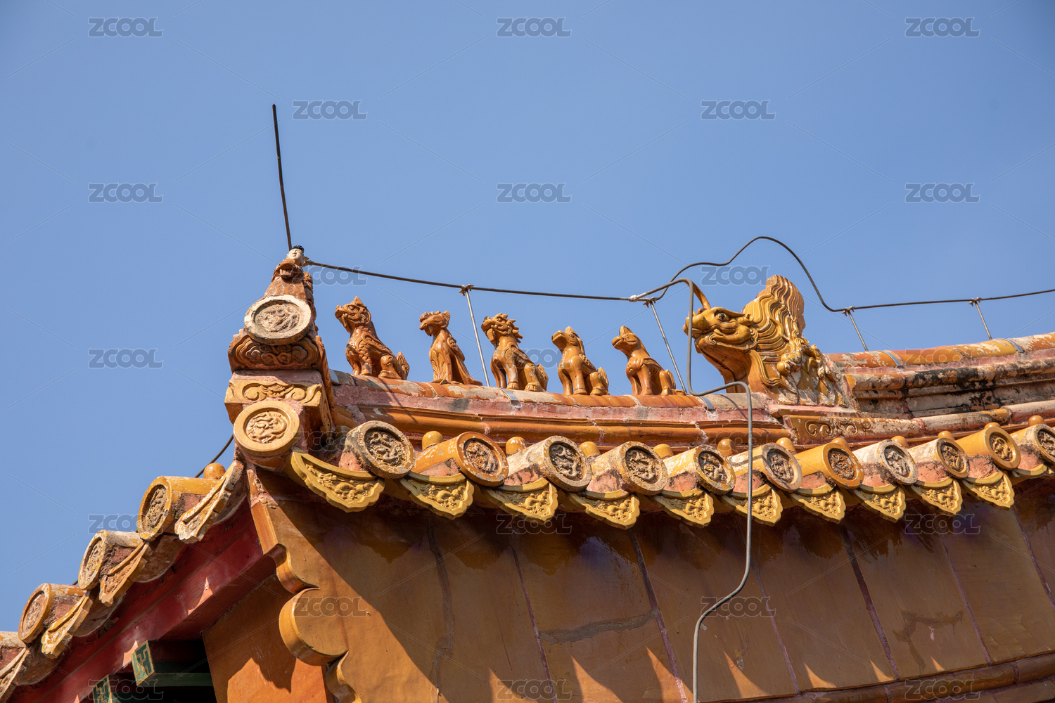 中国古典建筑屋顶神兽局部特写
