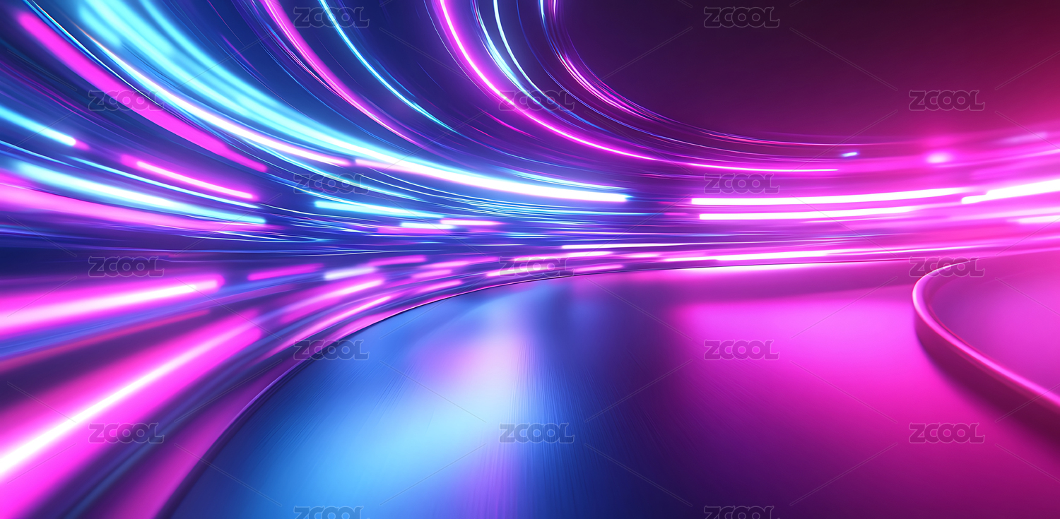 抽象霓虹灯发光几何线条3D渲染商务背景