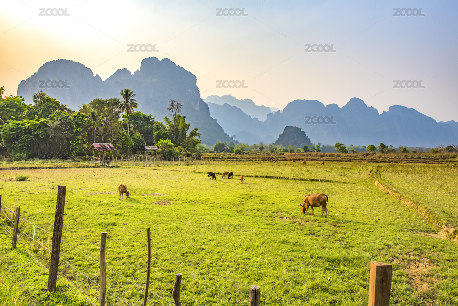 Golden Pasture in Vang Vieng, Laos, Southeast Asia