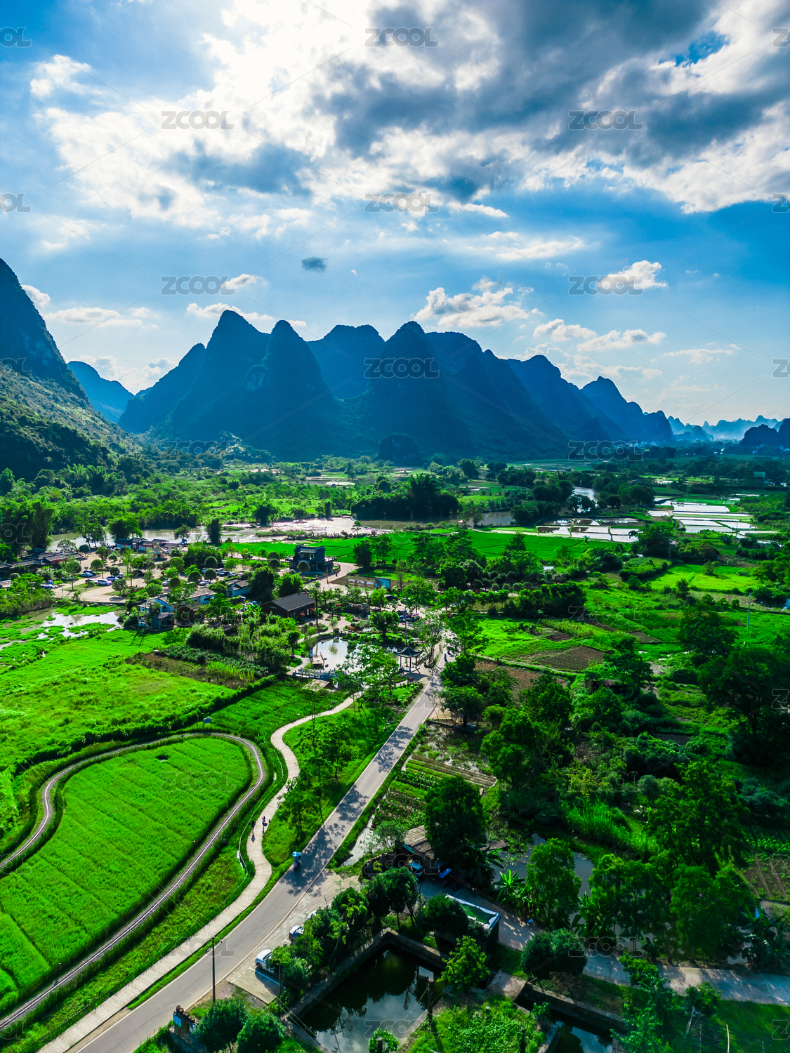 广西钟山县百里水墨画廊喀斯特峰林风光美