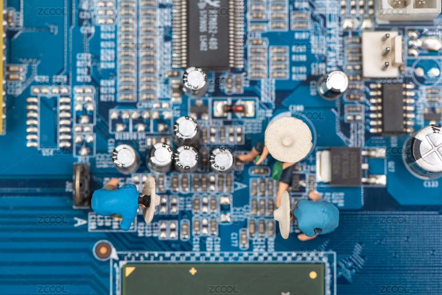 电脑主板维修与玩偶玩具创意图片