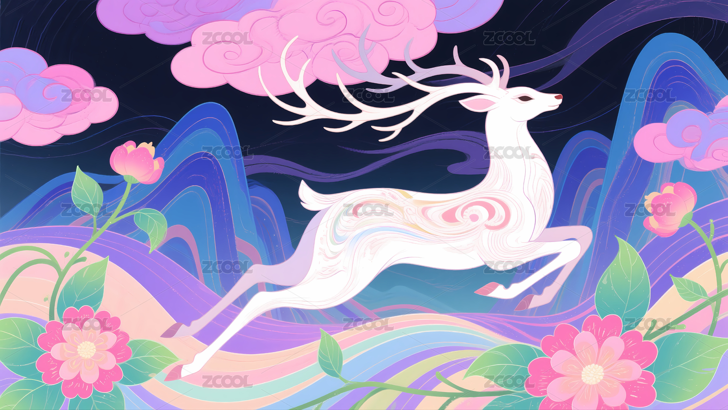 神女站在云雾飘渺的群山间神鸟向她垂首