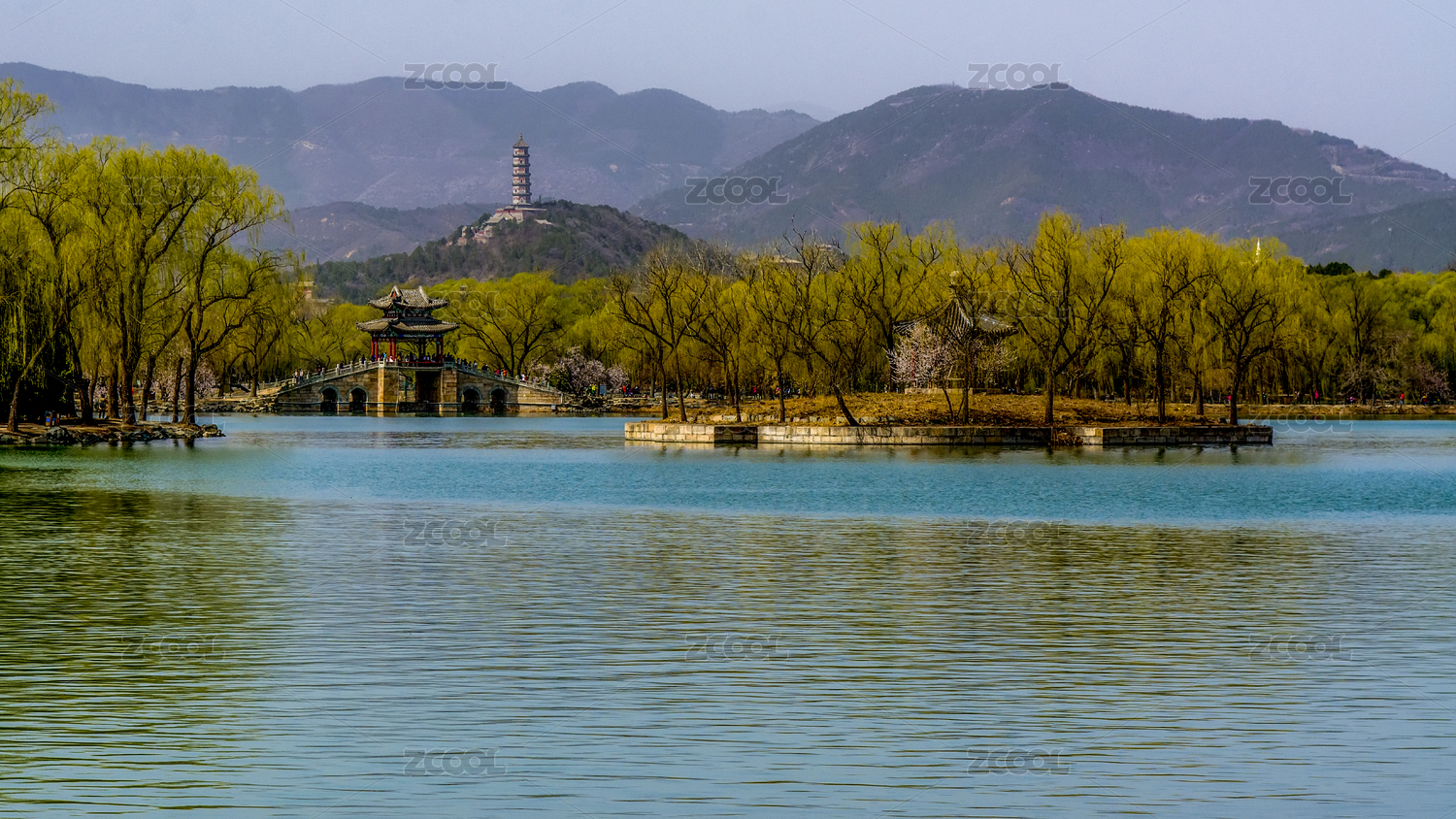 中国,北京,颐和园,昆明湖,西堤,景明楼,西堤春晓,燕京八景,春天,春色