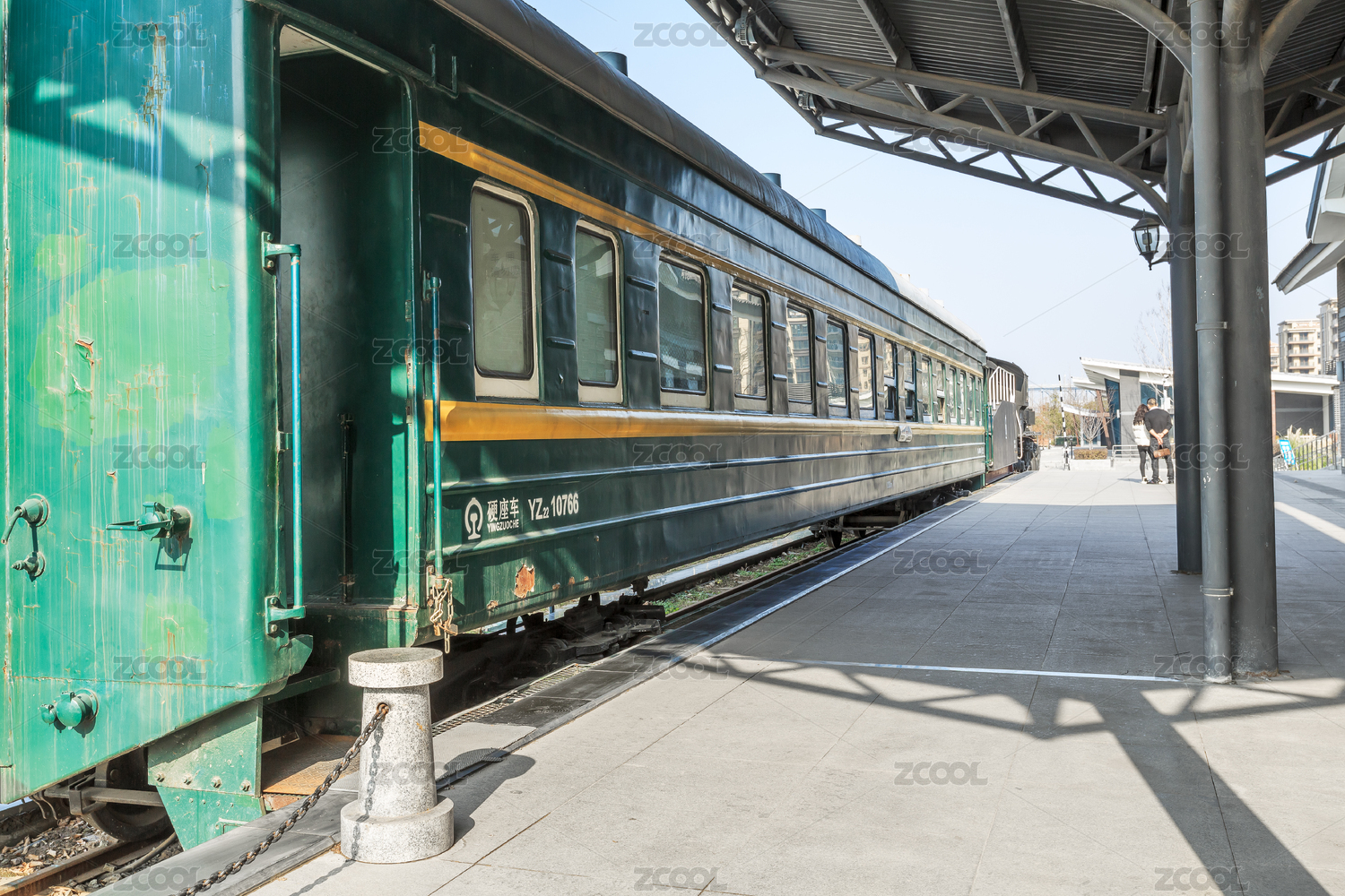 铁站站台绿皮车厢,中国江苏省南京市下关火车主题公园