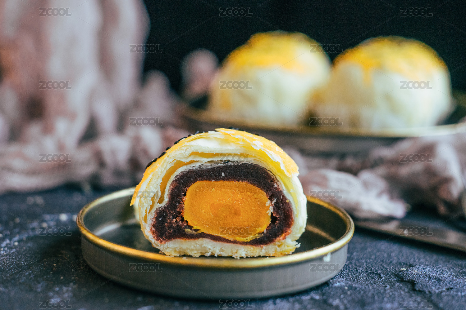 蛋黄派摆盘特写