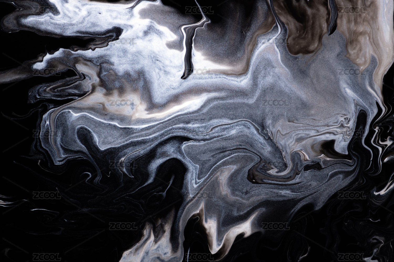 黑白灰混合颜料流体艺术,抽象的彩色背景墙纸纹理。