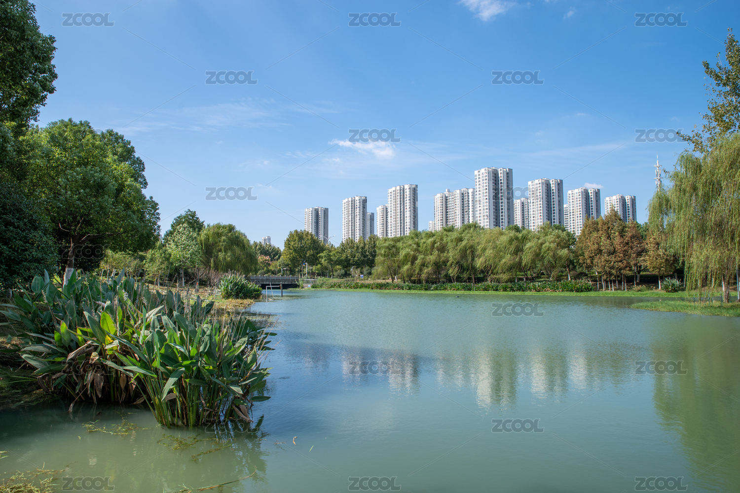 中国江苏无锡江阴长泾东舜湖江南小镇建筑新型水乡小区风景