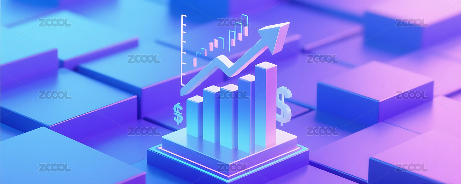 紫蓝色几何金融经济柱状图插画背景壁纸