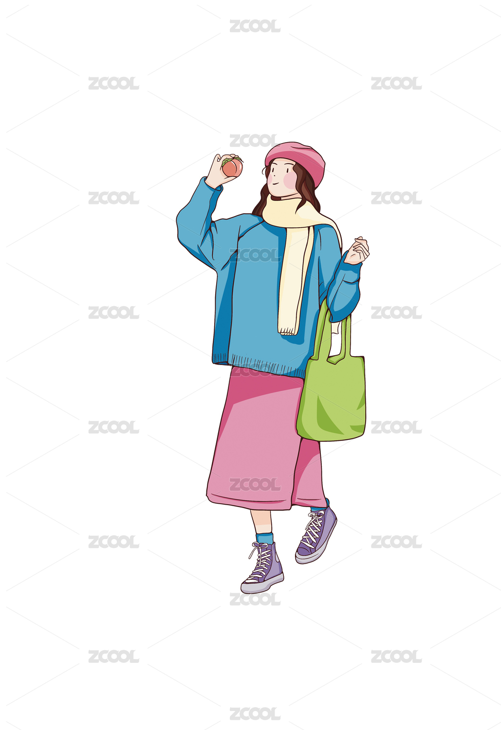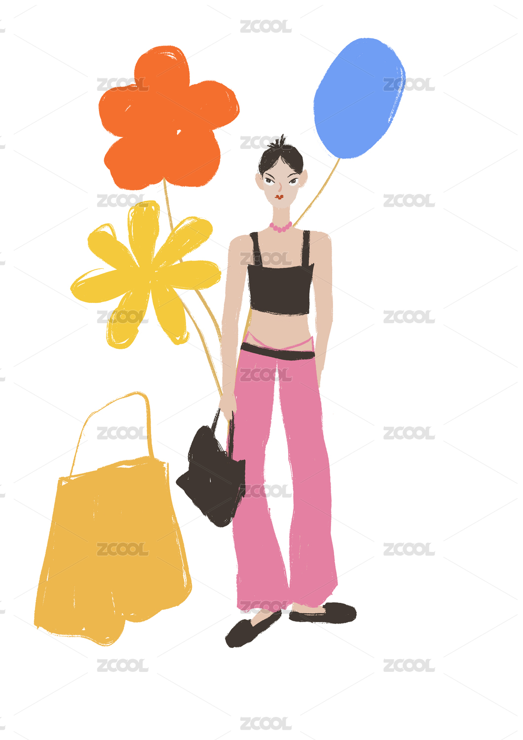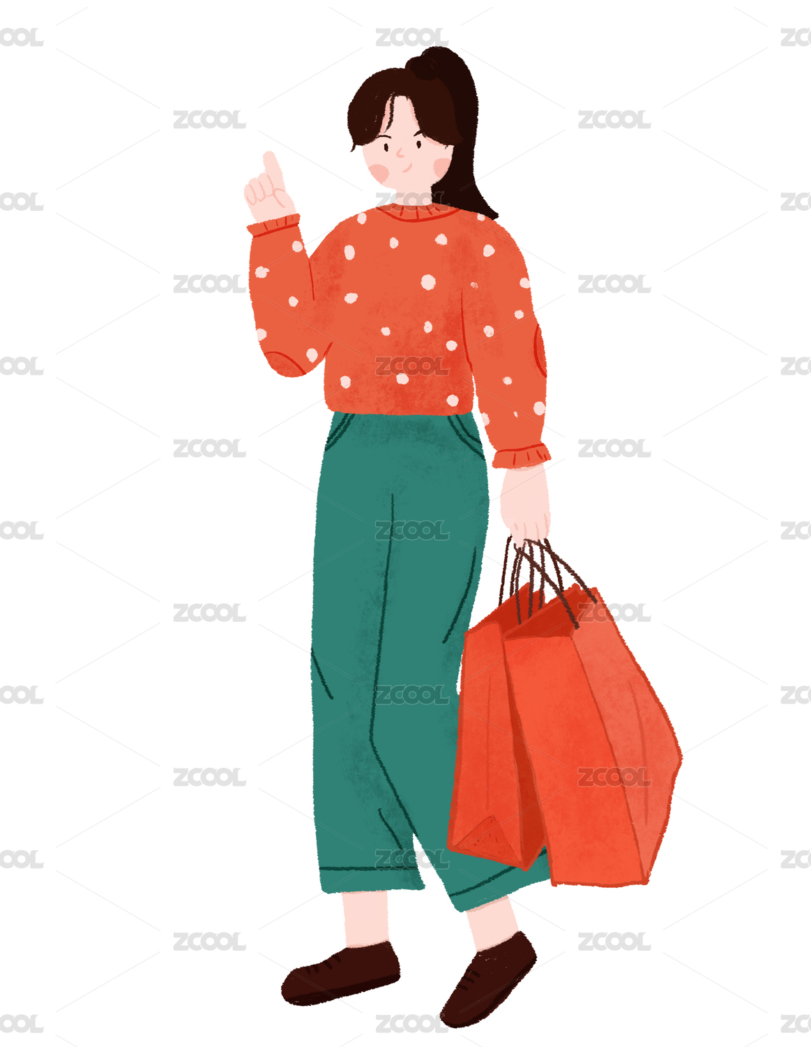 女性,人物,女孩,插画,美丽,漂亮,购物,线条风,元素,现代