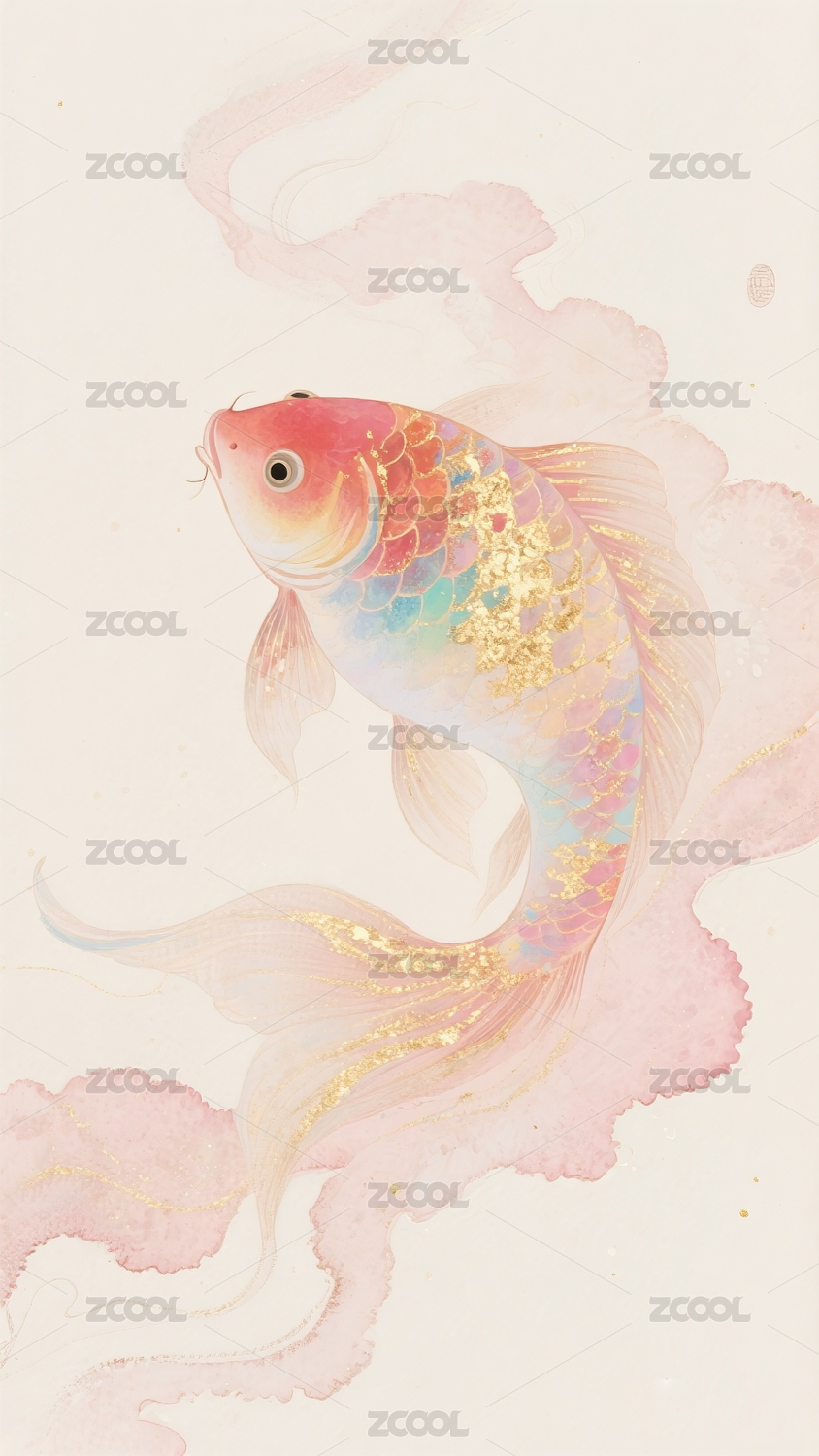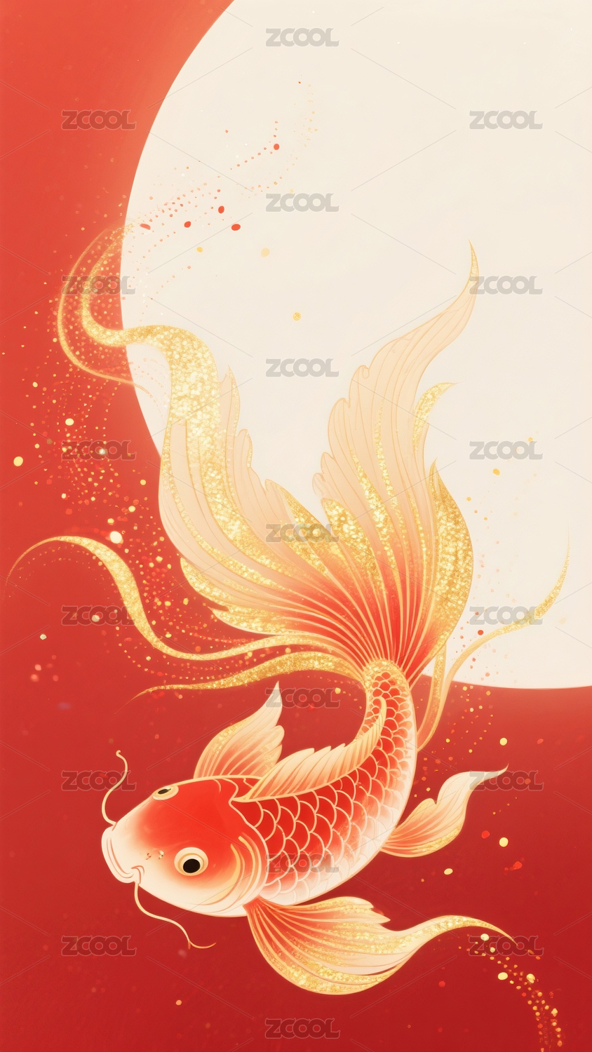 两只红色锦鲤跃出海面国风浮世绘插画 竖版