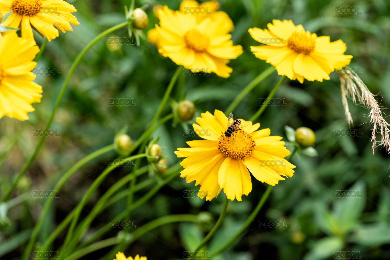 黄色的金鸡菊和蜜蜂