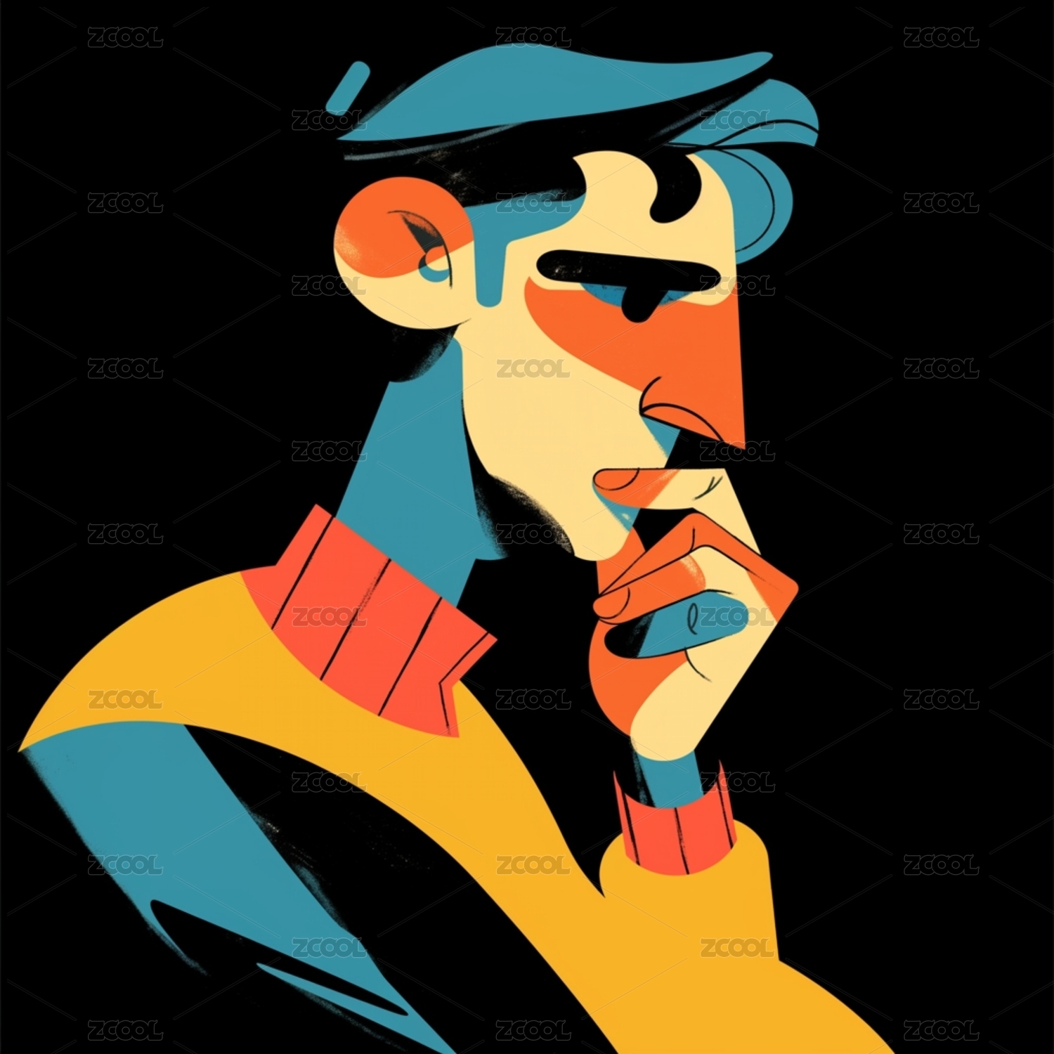 忧郁男子侧身抽象图