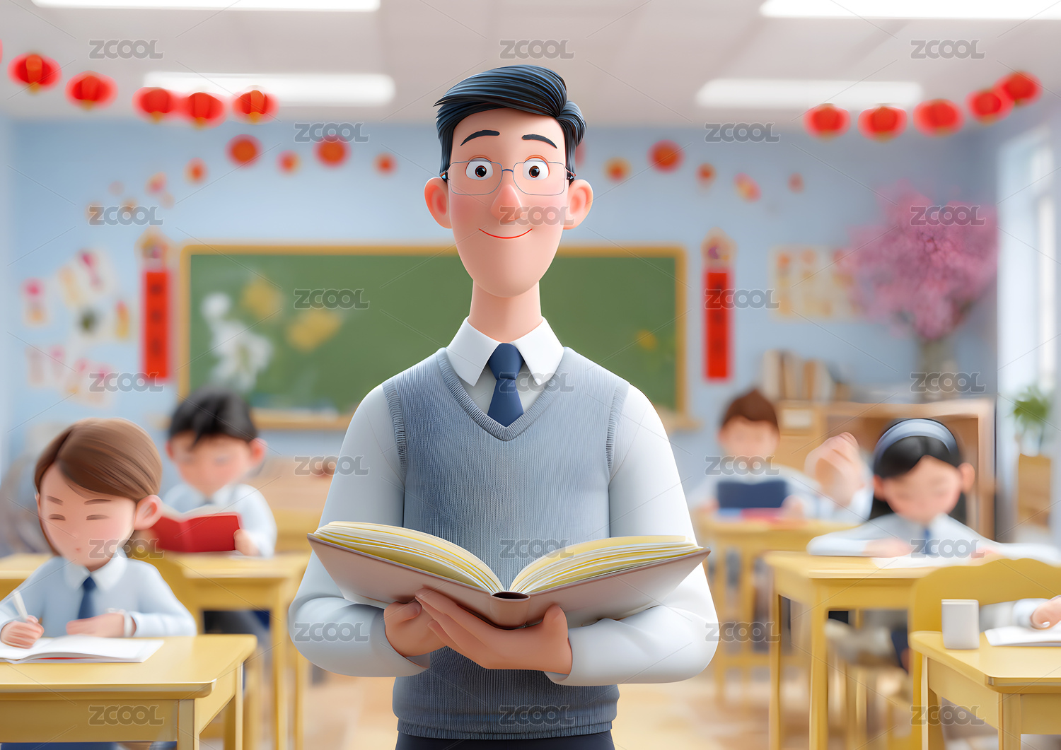 卡通3D老师背景
