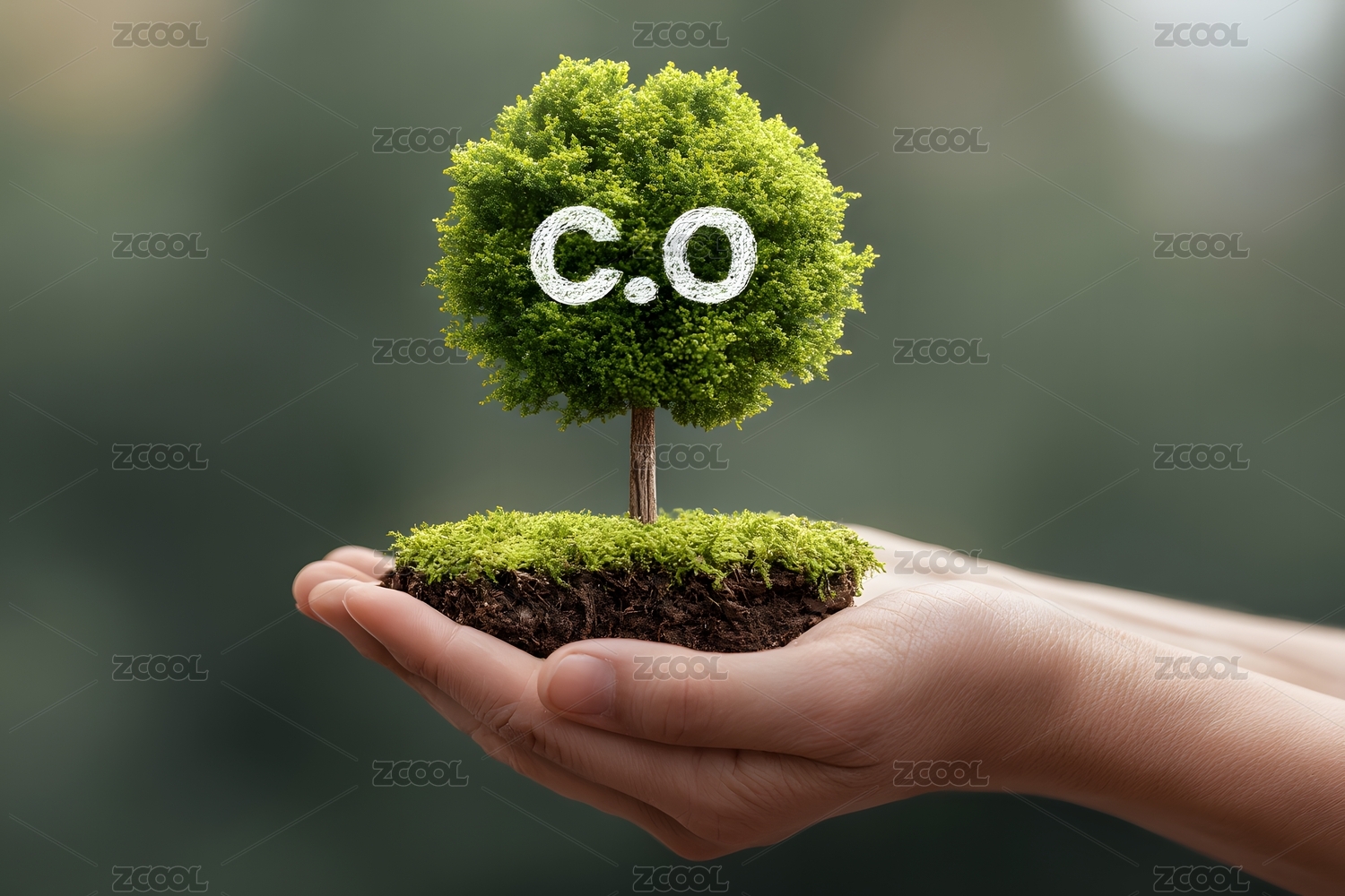 手托绿色树形CO标志