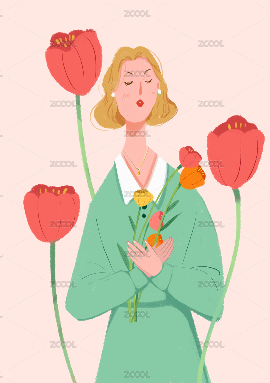自然,花,植物,郁金香,花朵,绿叶,花草,休闲,装饰,插图