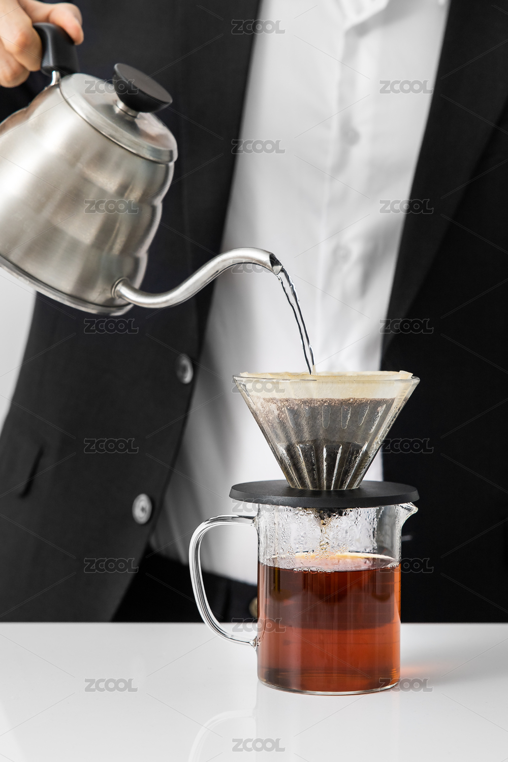咖啡师冲泡咖啡特写