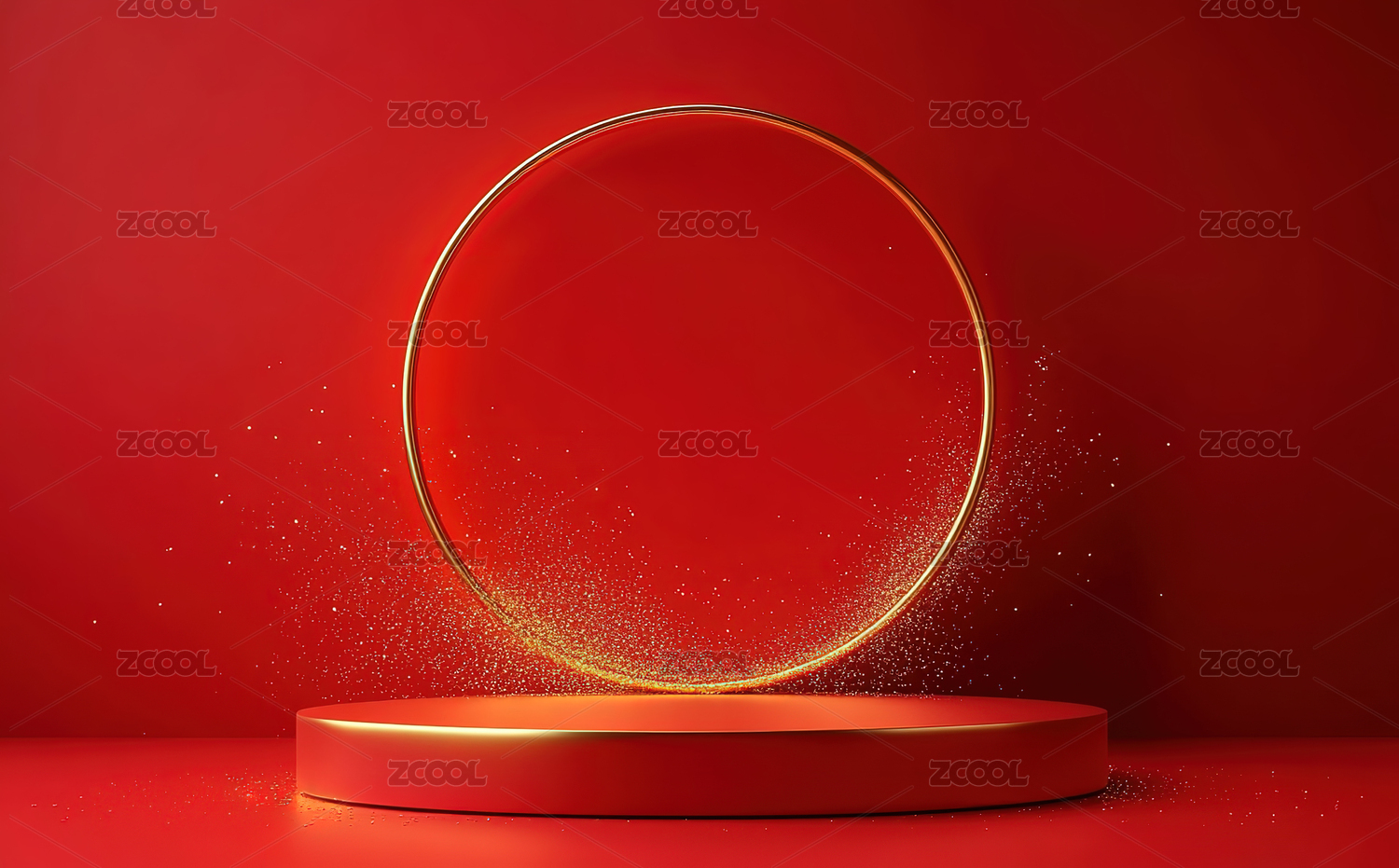 背景,插画,节日,DXCZ202402,产品展台,电商背景,电子商务,金色,圆环,红色