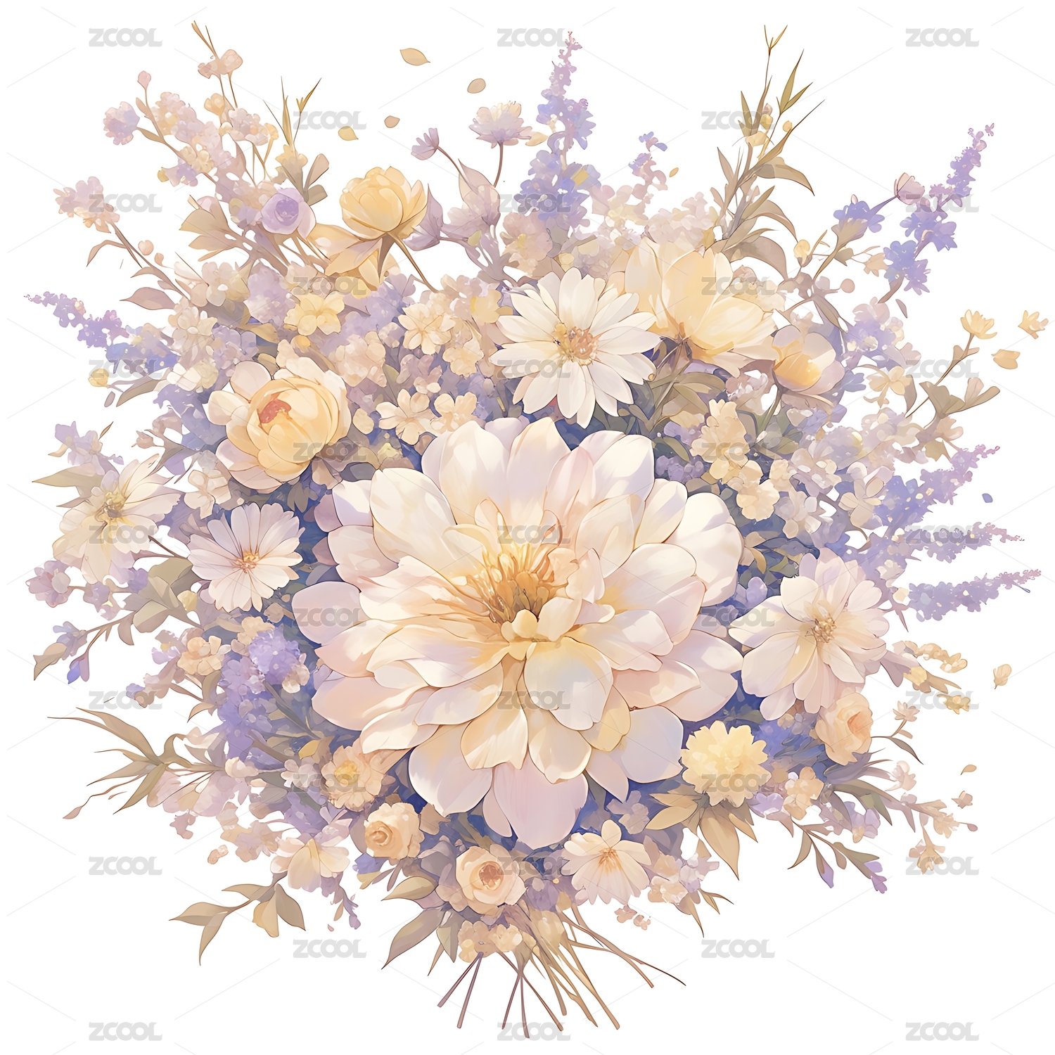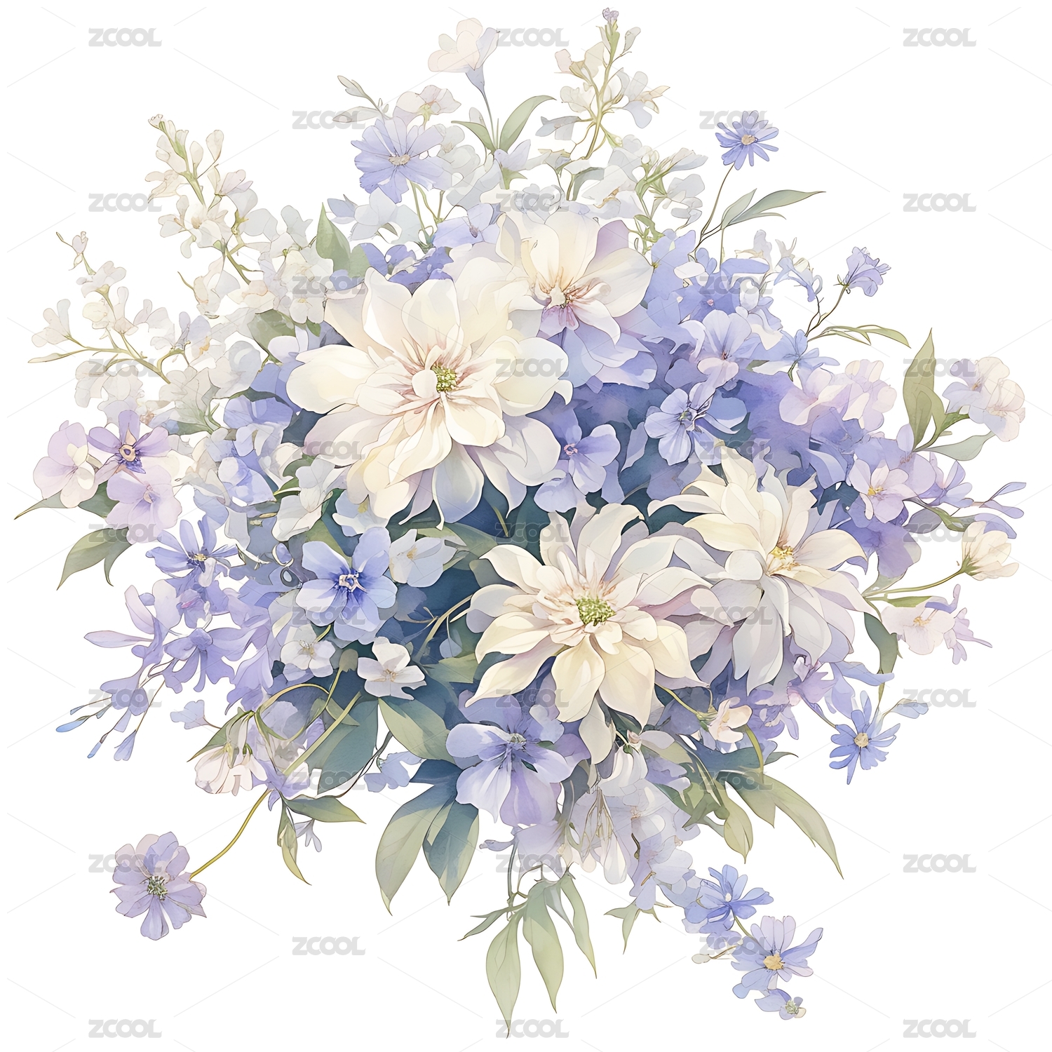 梦幻紫蓝色花卉水彩画唯美意境