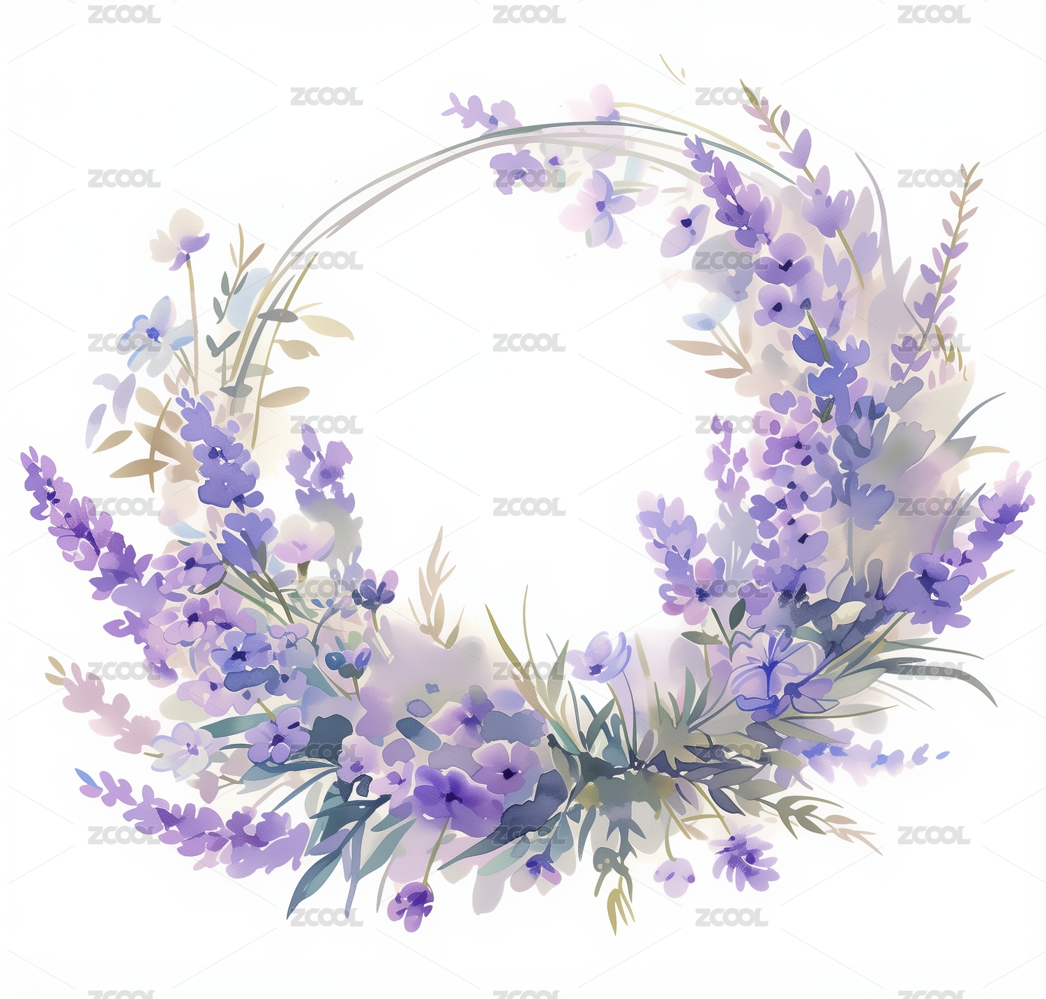 紫色小清新花环插画