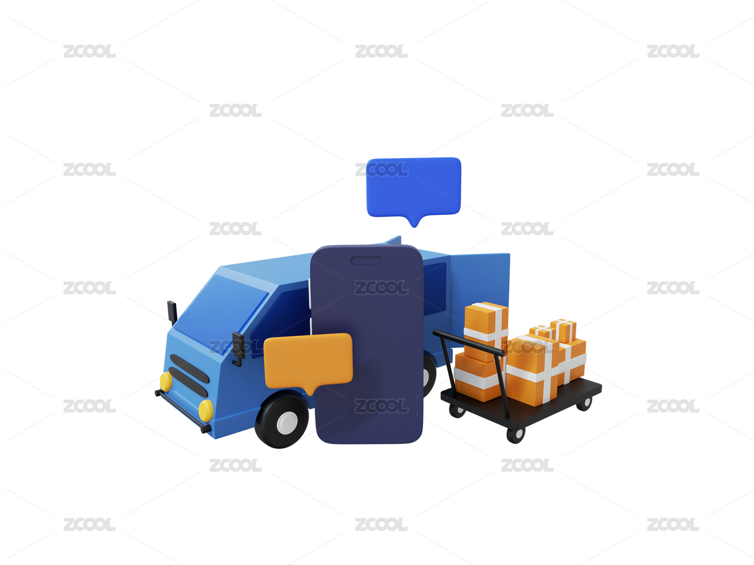智能货车卡车智能驾驶3D装载货物插画