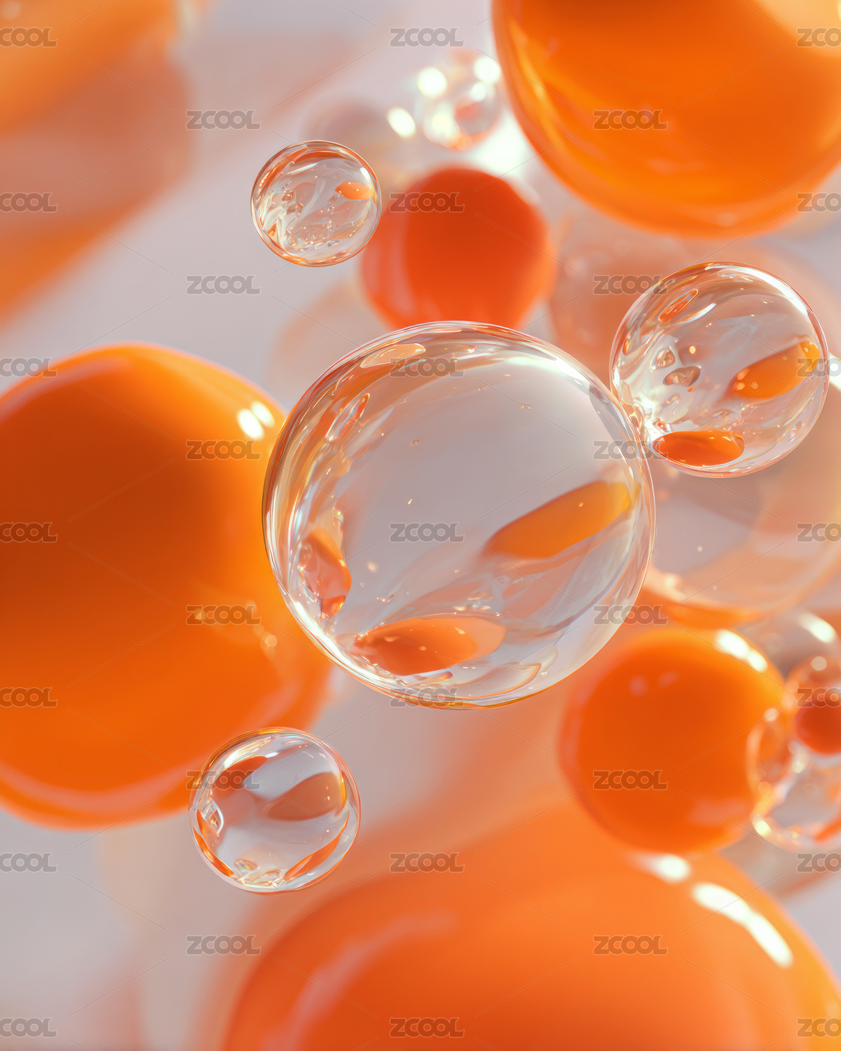 微距镜头下的橙色液体与透明气泡