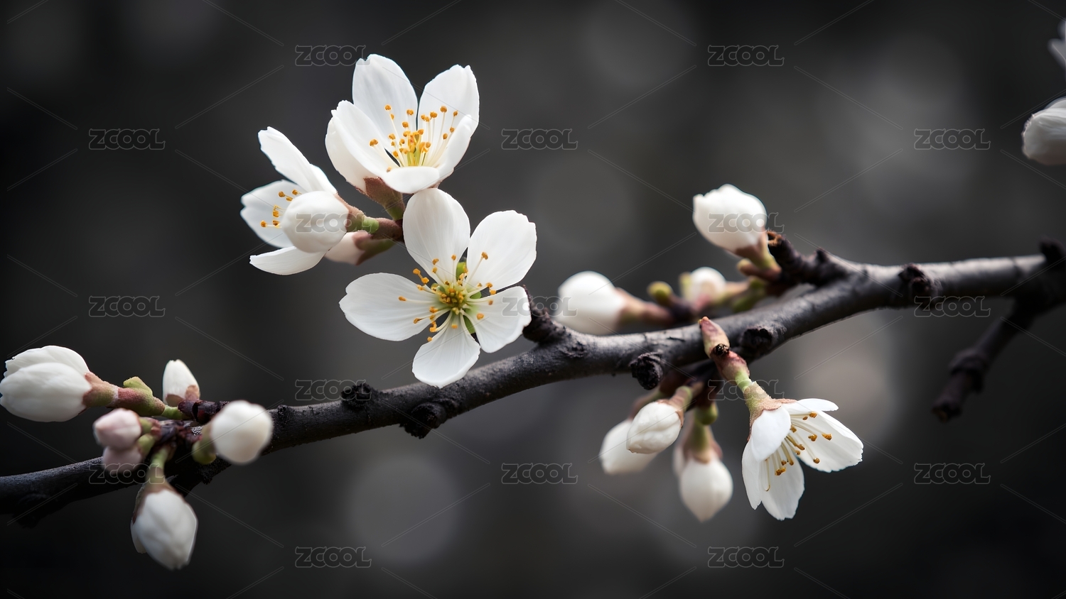 白色花朵枝条特写