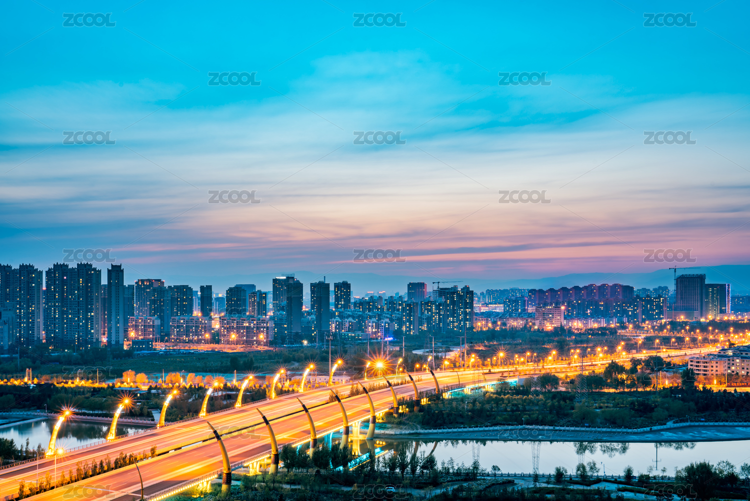 呼和浩特,桥,大桥,傍晚,夜景,晚霞,日落,建筑,道路,车流