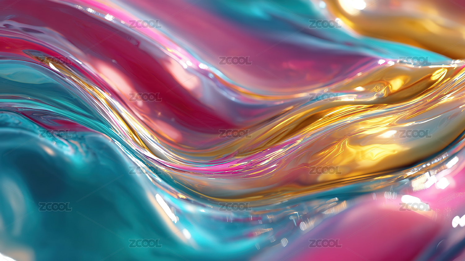 多彩渐变的流动液体,玻璃质感,抽象背景