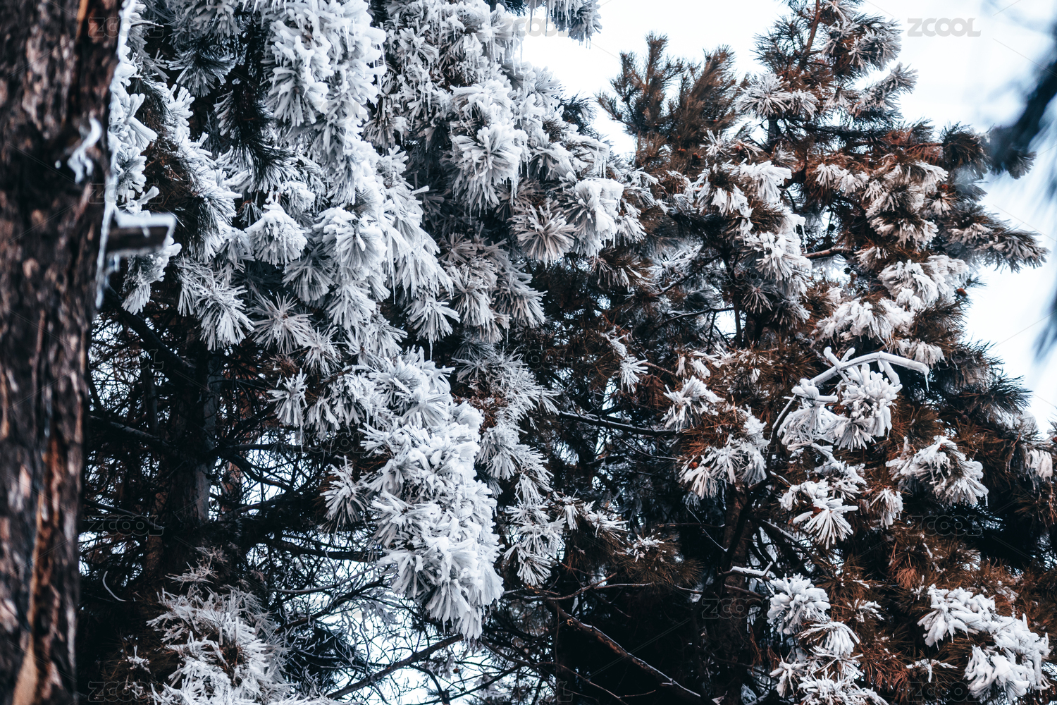四川眉山瓦屋山景区冬日树枝上的冰雪