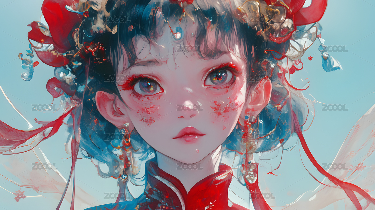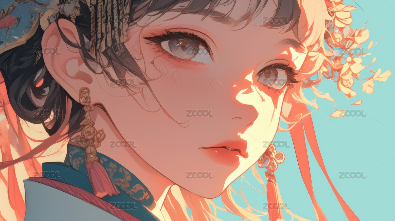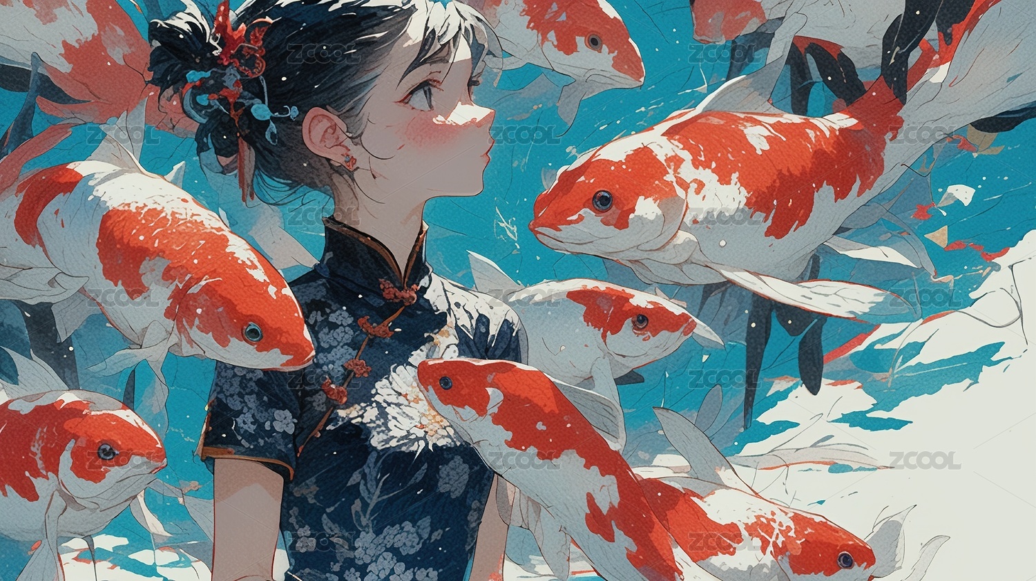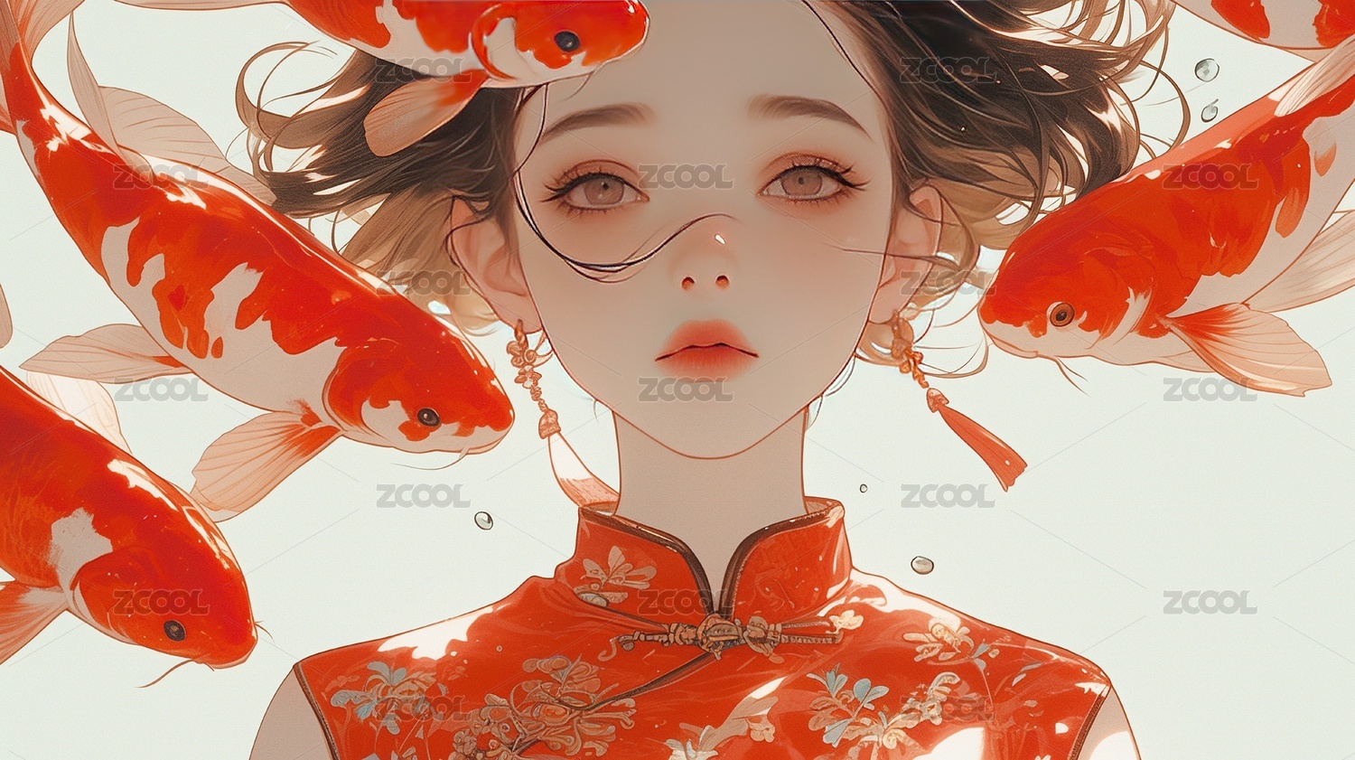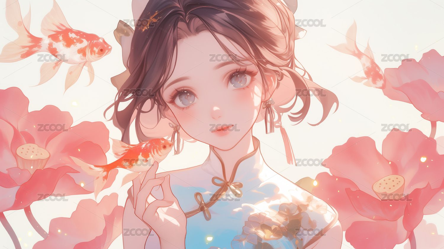 女人,美女,汉服,国风,肖像,鲤鱼,锦鲤,旗袍,女孩