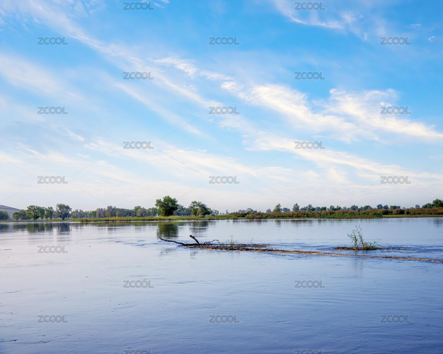 湖水杨树林