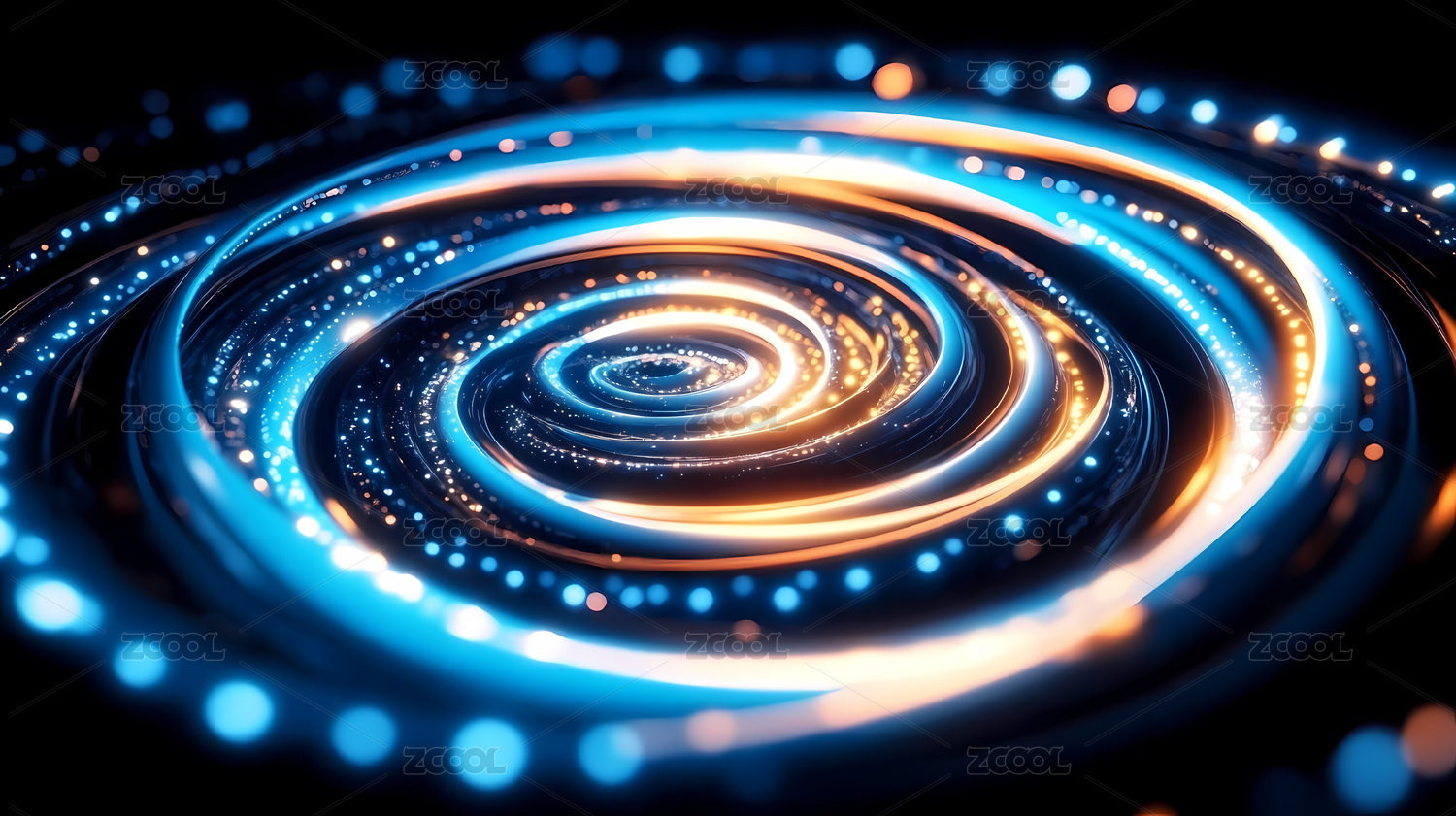蓝色科技全息抽象霓虹光效粒子光纤圆背景