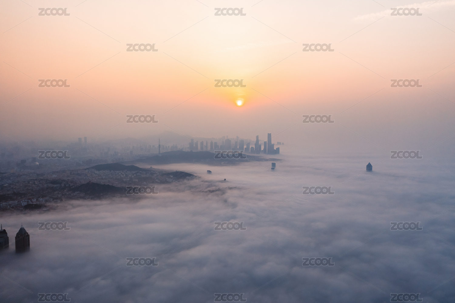 青岛城市平流雾航拍风光