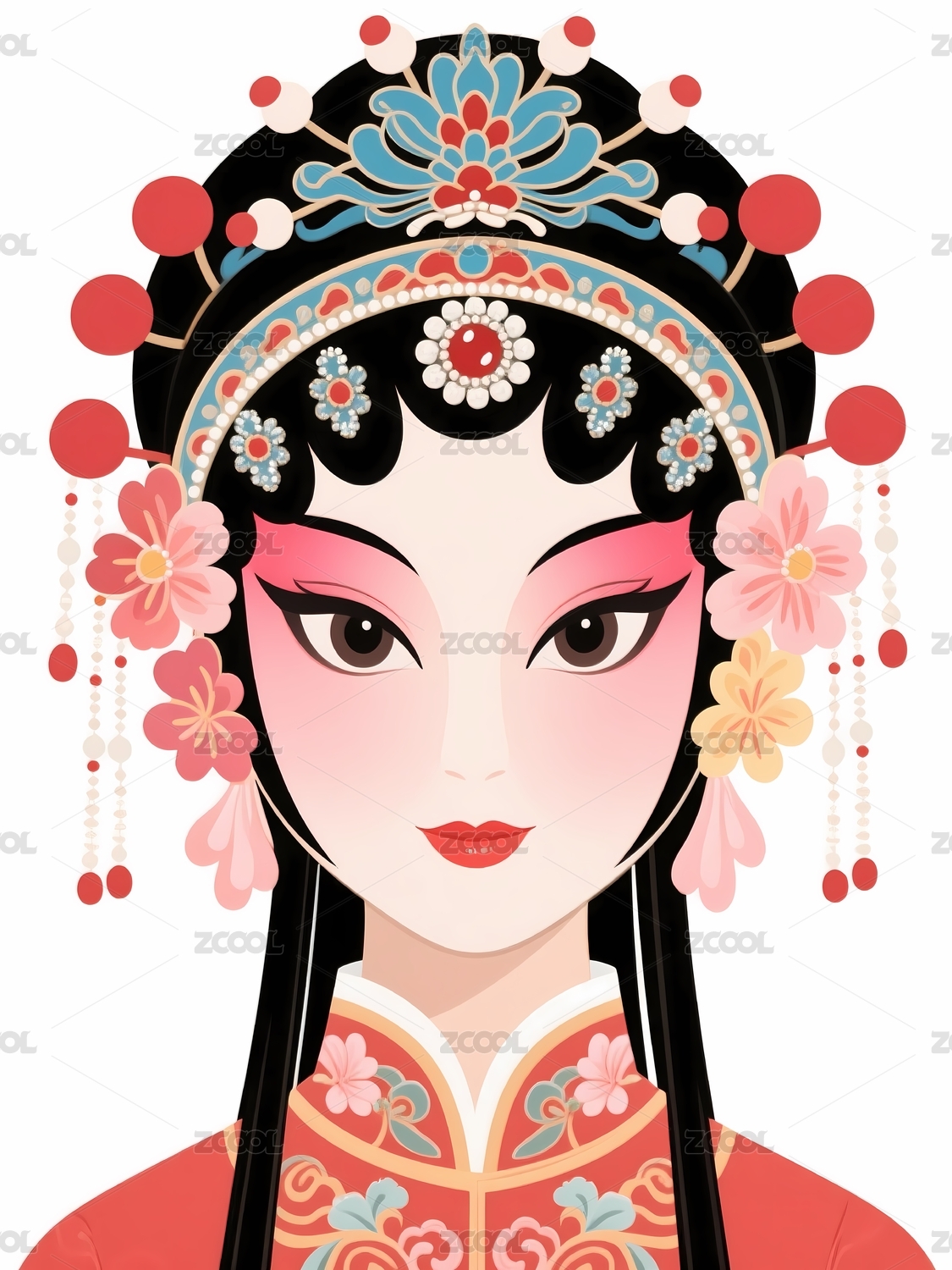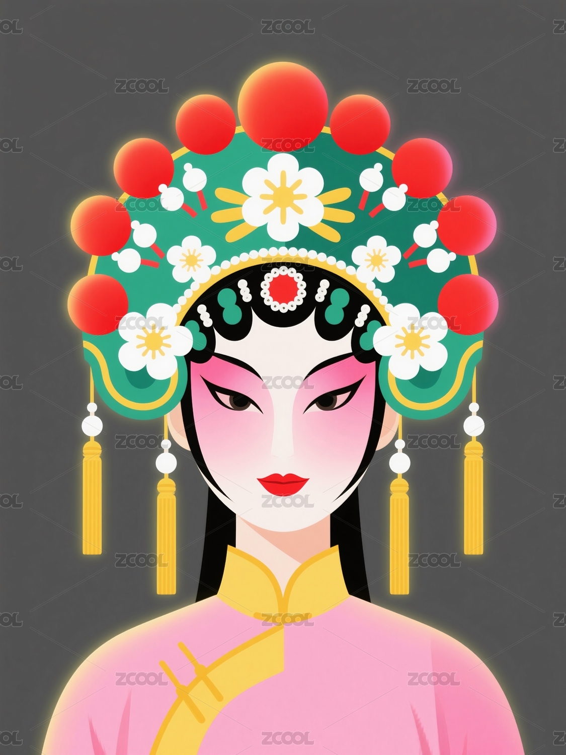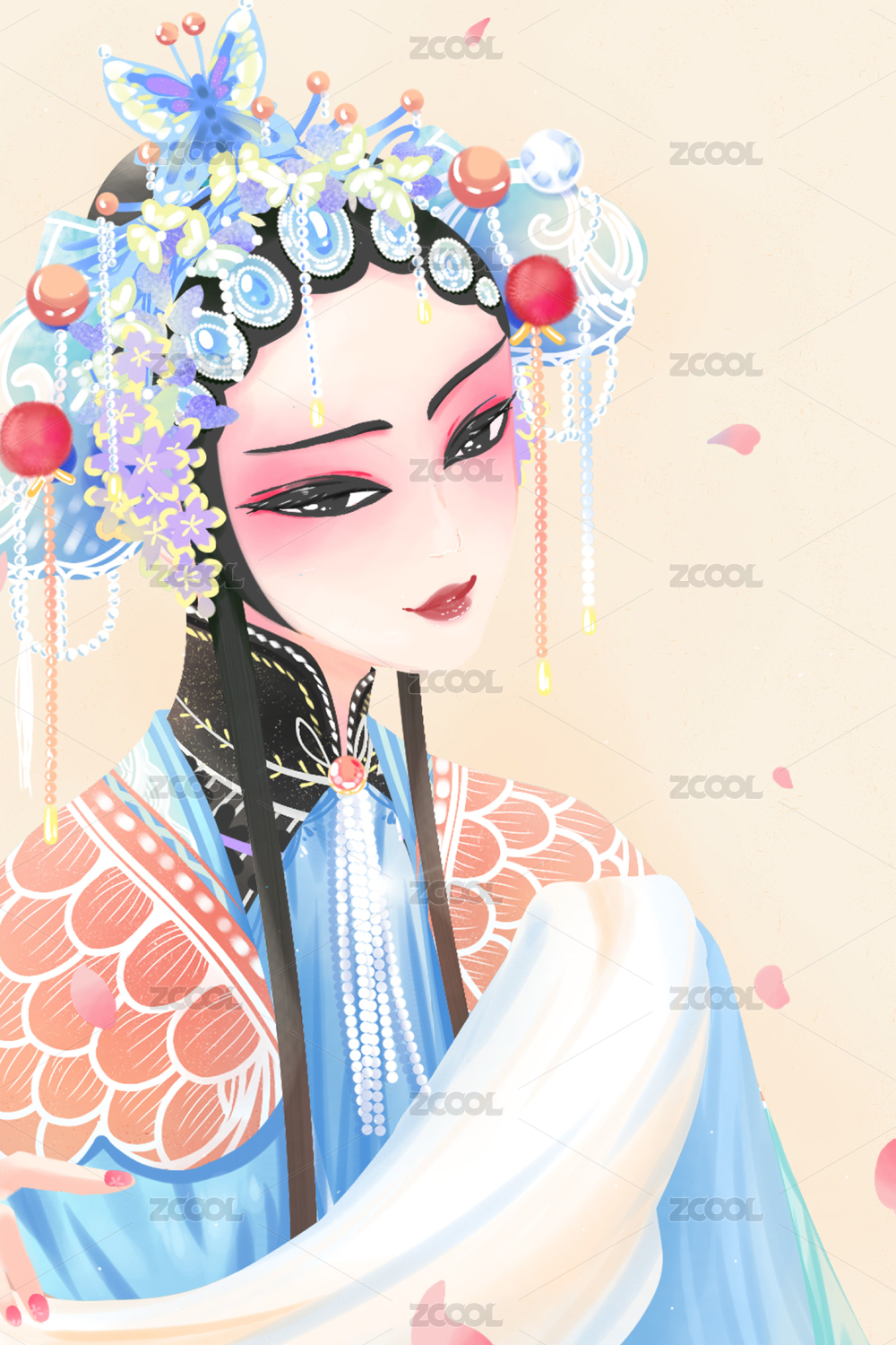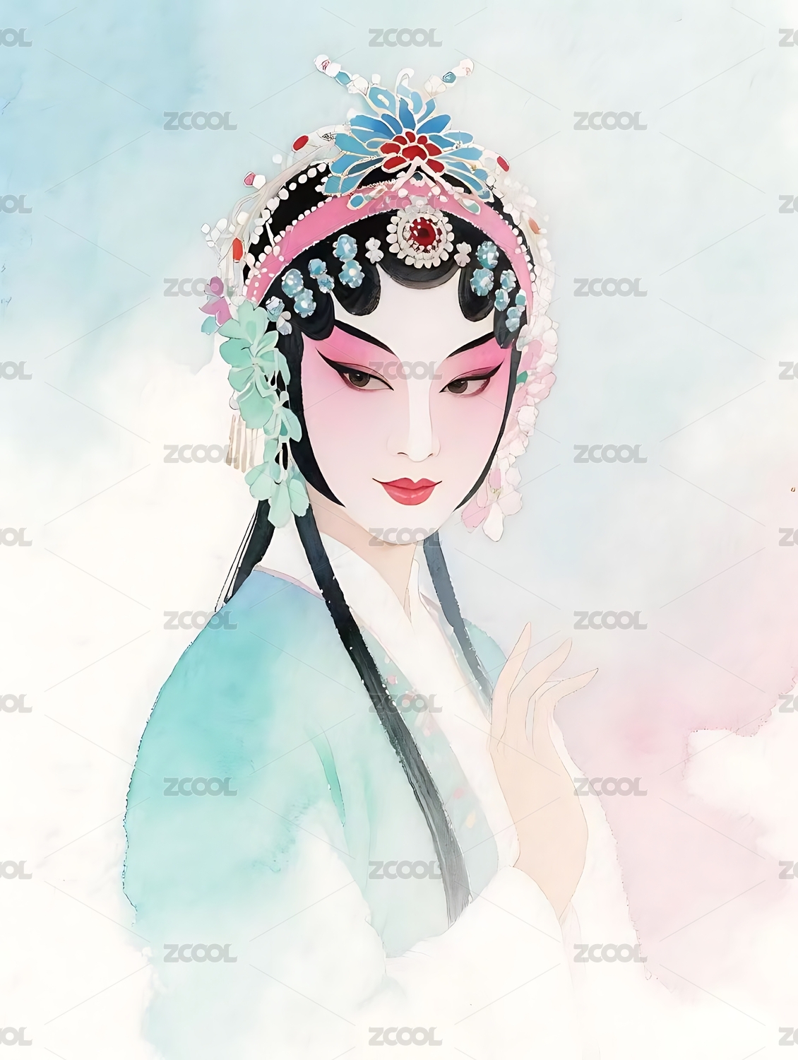 一位穿着中国古代戏服的美丽的女演员,背景是烟雾的插画
