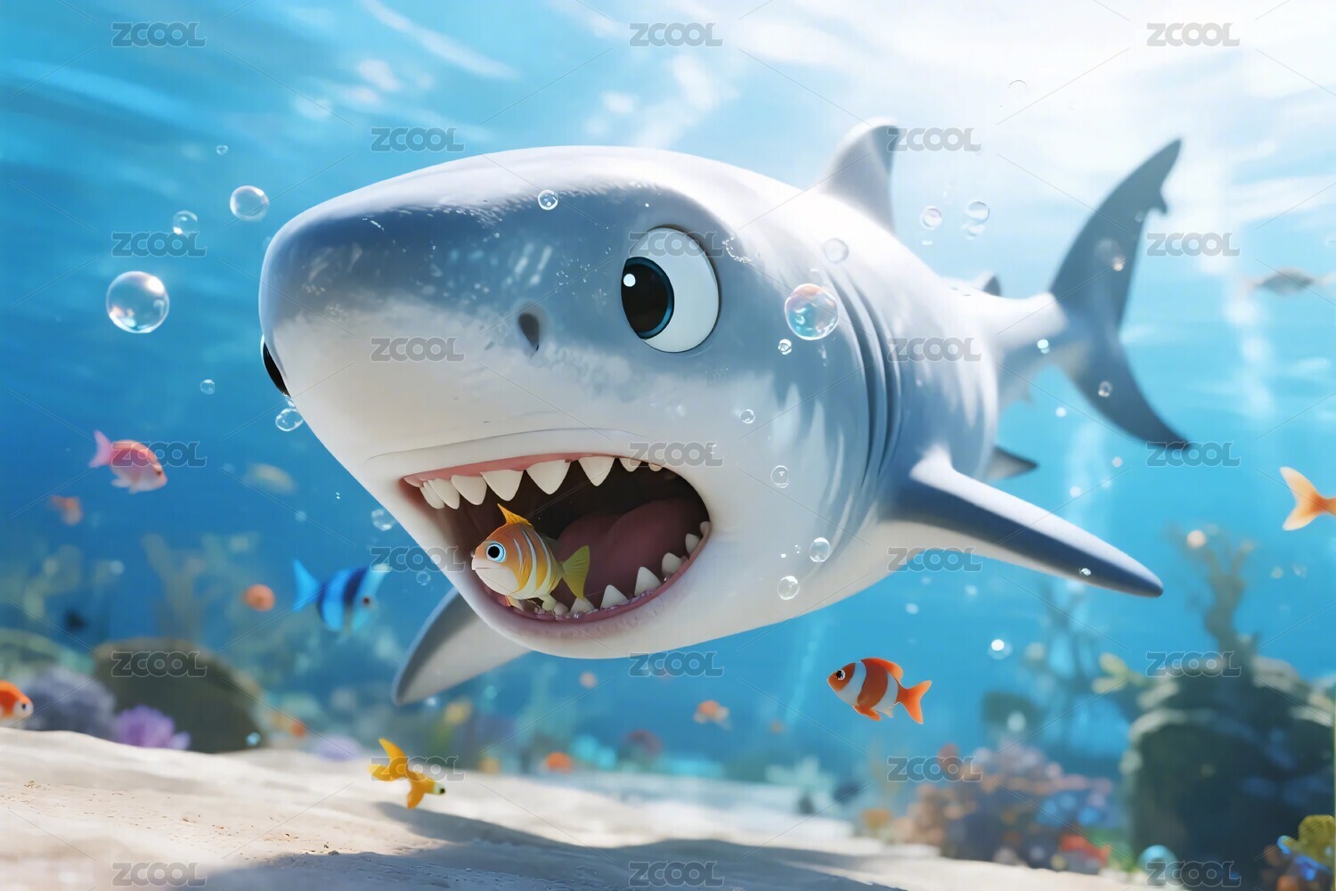 卡通鲨鱼的海洋冒险
