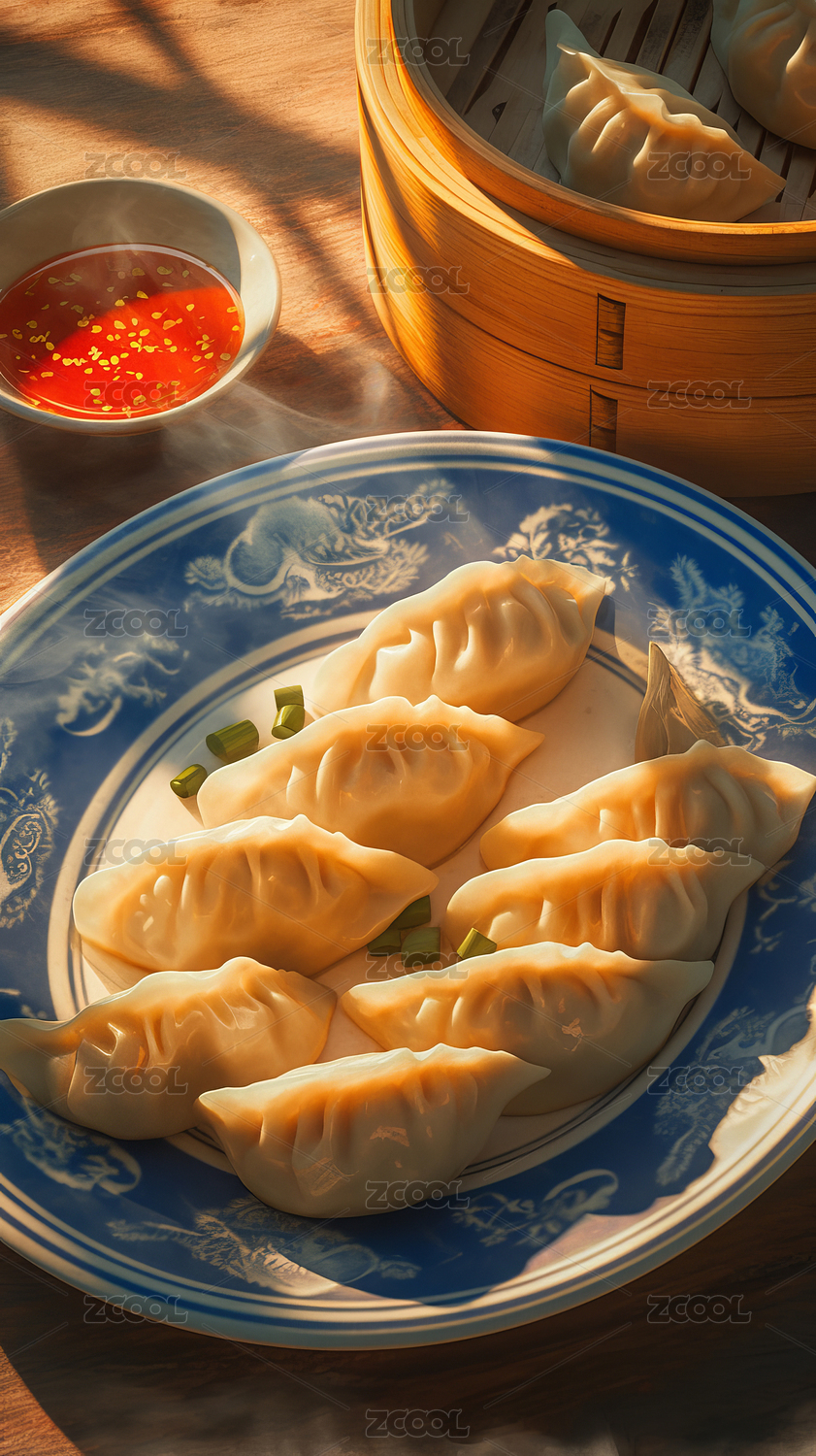 饺子, 红盘, 传统, 美食, 中国, 包子, 食物, 春节, 面点, 馅料