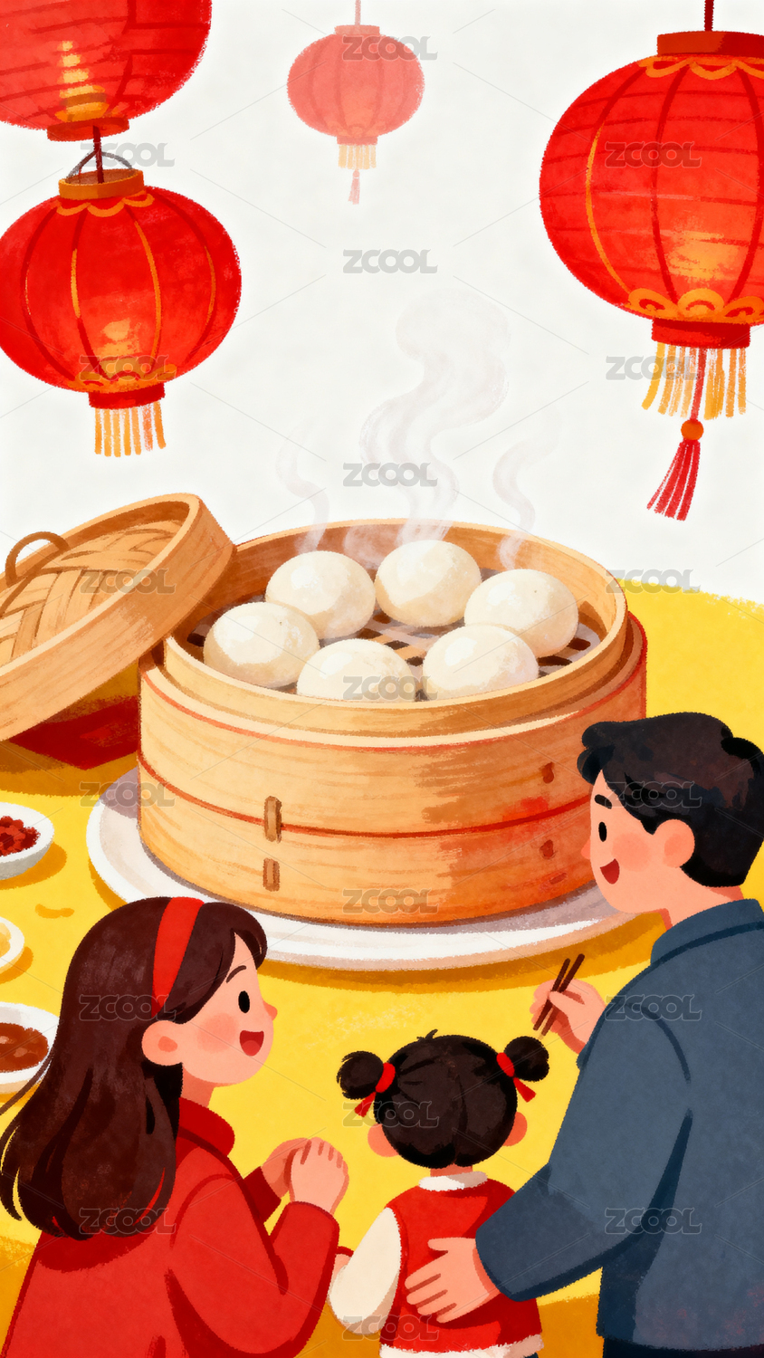 插画,年俗,习俗,传统文化,中国文化,情侣,家庭,节日,海报,拜年