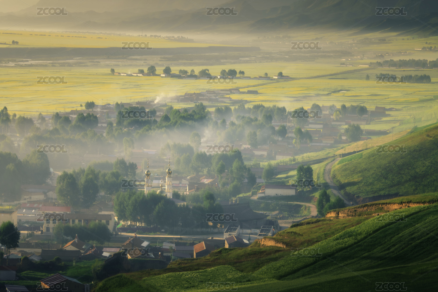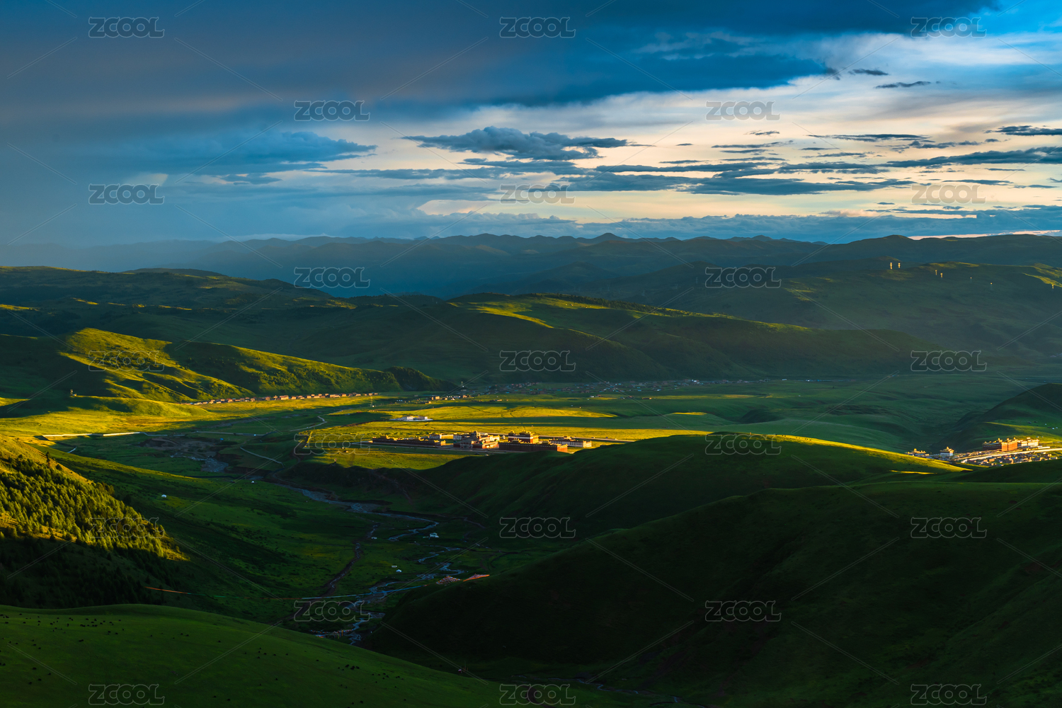 阿坝藏族羌族自治州郎依寺的晨景俯拍