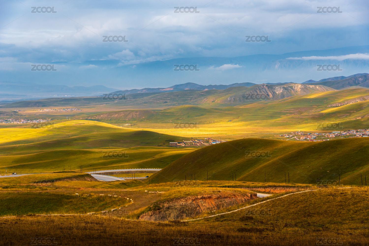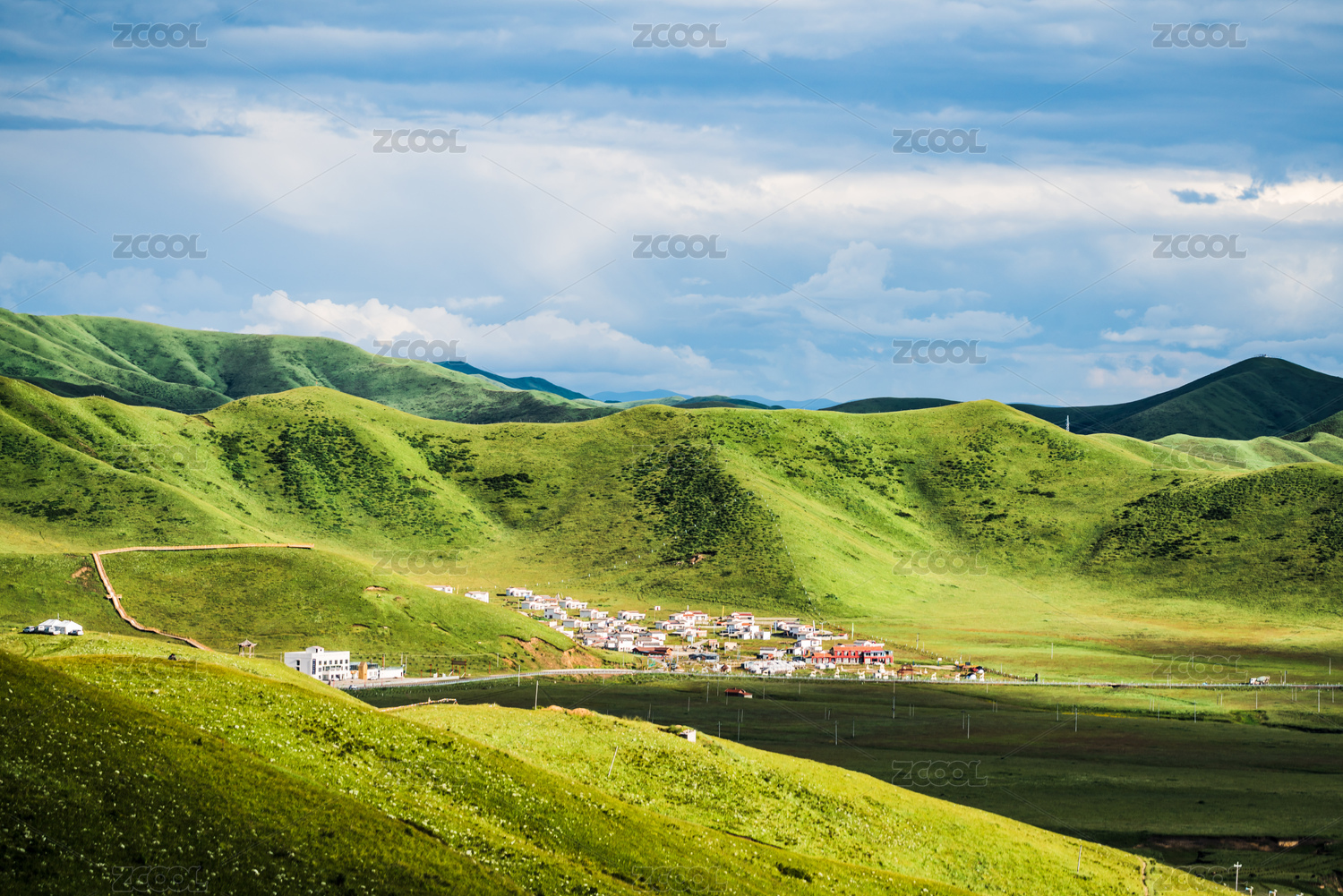 中国四川若尔盖草原雪山寺院佛塔自然风光