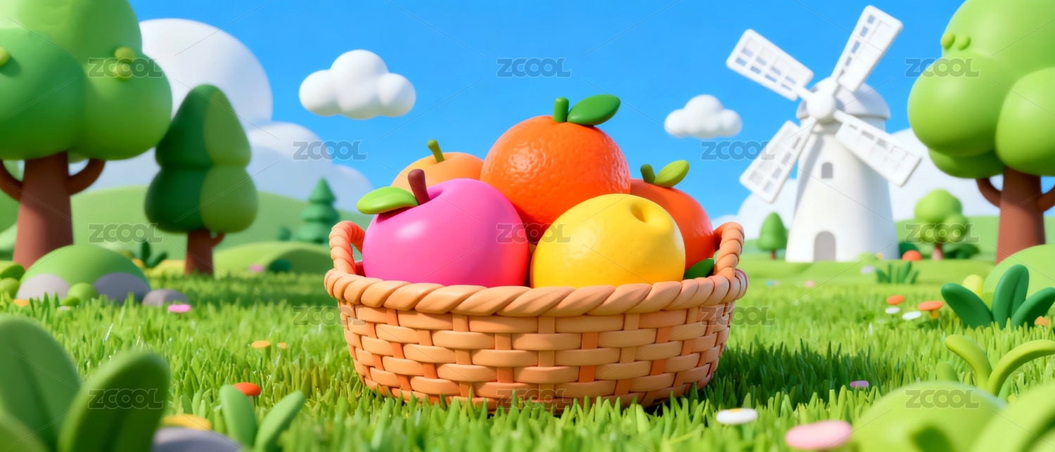 水果,场景,3d,卡通,天空,蓝天,食欲,美食,生鲜,丰富