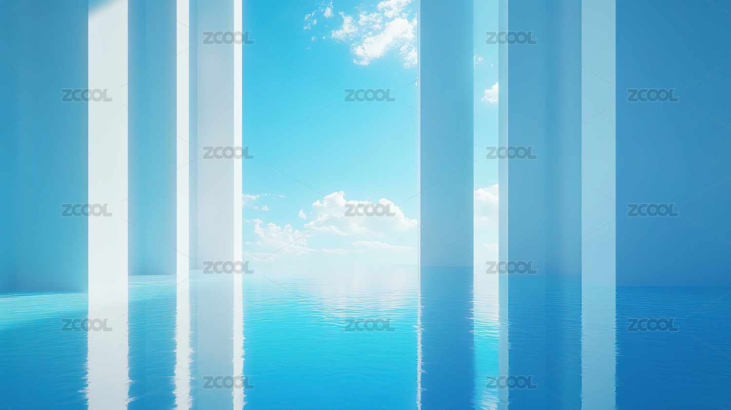 天空,云朵,倒影,建筑,白色,宁静,现代,艺术,设计,水面