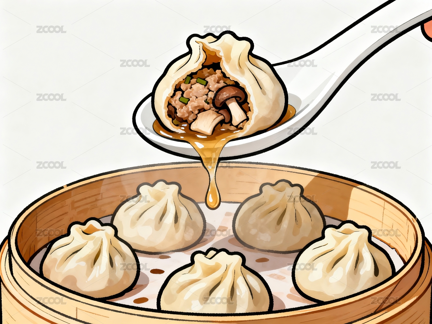 汤包蒸笼勺子流汁