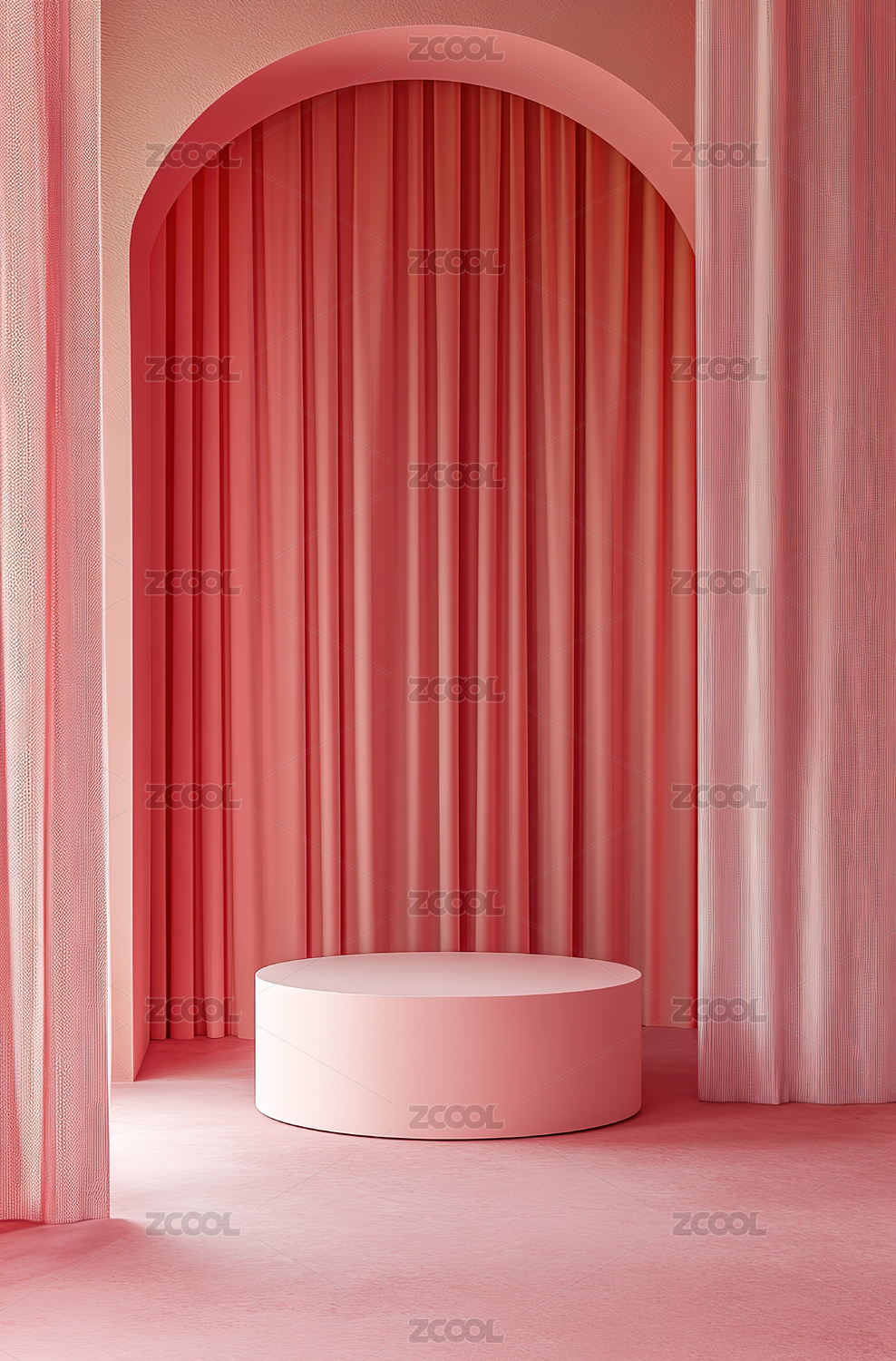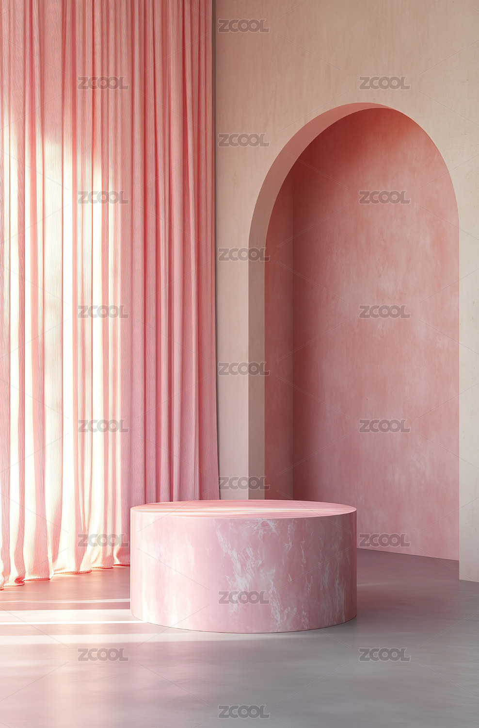 简约,现代,艺术,建筑,粉色,拱门,大理石,基座,窗帘,室内设计